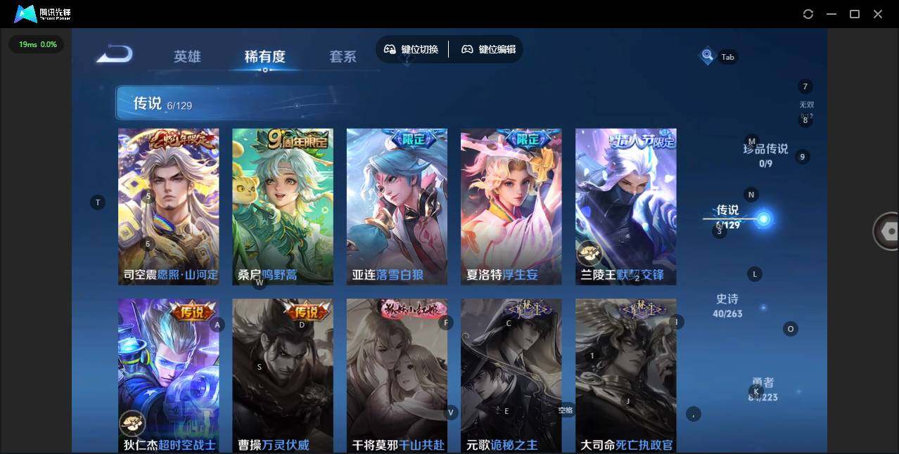 - [11852274]V6 4传说 125英雄 161皮肤 可修改实名 传说皮:幻光神枪 珍宝阁皮:妄想食味 限定皮:愿照·九州拓(澜年限),愿照·山河定(司空震年限),逐霄战戟,鸣野蒿,逐梦之翼 史诗皮:器灵·浮梦炉,化蝶舞,星界战将,怒海争锋,破空之剑,战舞者,蒙犽顽岩魄,芈月浮光幕影,蔬乡物语(鲁班七号),百相守梦-百里守约,百相守梦-黄忠,紫霞仙子,蒙恬荣光圣徽,偶像歌手,末日机甲-吕布,猫狗日记-大乔,摇滚巨星,水果甜心,绅士熊喵,星夜王子,心灵骇客,德古拉伯爵,鬼剑武藏,心灵战警,地狱岩魂,缤纷独角兽,水晶猎龙者,金属风暴,原初追逐者,圣诞狂欢,圣诞恋歌,鹰眼统帅,魅力维加斯,雪上飞焰,未来纪元-赵云