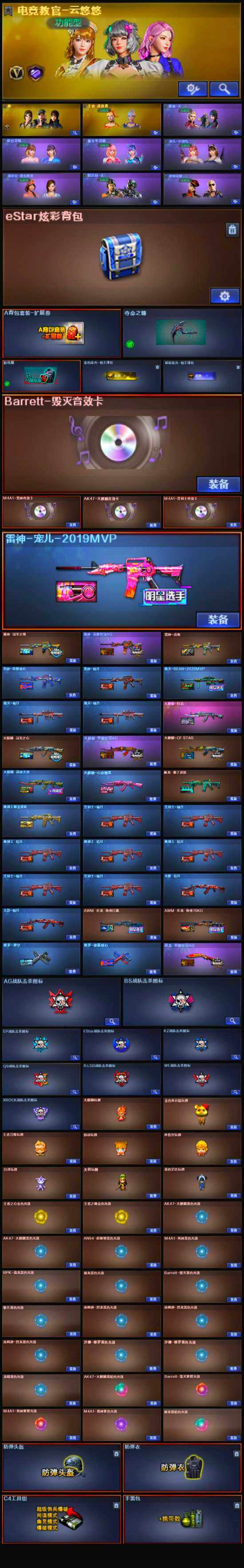 【稀有皮肤】:雷神-能量核心,雷神-虎将,雷神-冠军之魄,雷神-宠儿-2019MVP,雷神-荣耀世冠AG,火麒麟-冠军之心,火麒麟-战神关羽,火麒麟-白虎,火麒麟-荣耀世冠AG,火麒麟-心动糖果,黑骑士-暗月*7,黑龙-墨子皮肤,毁灭-暗月*2,毁灭-BEAN-2020MVP,AWM-天龙-传奇70KG,AWM-天龙-传奇白鲨,修罗-星空,天神-暗月,屠龙-荣耀世冠AG
