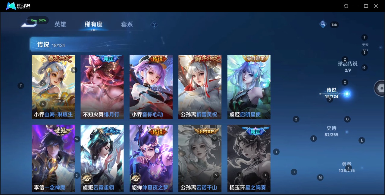 [12281289]V8 1无双 2珍品传说 18传说 125英雄 299皮肤 可修改实名 优质装备:小乔时之魔女(小乔无双),怪盗基德,器灵·落星盏,一念神魔,云霓雀翎,仲夏夜之梦(大飞蛾),音你心动-小乔,山海·琳琅生(小乔年限),浮生妄,鹤归松栖(云缨),大乔-时之奇旅,涂山容容 传说皮:幻光神枪,续相思 珍宝阁皮:优雅恋人,蔷薇恋人,玩趣恶龙 限定皮:愿照·九州拓(澜年限),愿照·岁时盈(虞姬年限),愿照·众生和(妲己年限),愿照·千秋盛(女娲年限),陌上桑,鸣野蒿,傲雪梅枪,绯月行,五谷丰年,梁祝,祈雪灵祝(雪兔子),李小龙,朱雀志(守约年限),如梦令-嫦娥,霸王别姬-虞姬,孙行者,大圣娶亲,蜜橘之夏,神器·万象笔,山海·玄木吟(马可年限) 史诗皮:赞萌露比,化蝶舞,鸭鸭历险记-刘禅,雪豹·霜爪,龙之律动,茶境仙,石田雨龙,百相守梦-周瑜,幻珠鲛人,百相守梦-百里守约,破空之剑,涂山红红,百相守梦-黄忠,织梦人,遇见神鹿,紫霞仙子,苍穹之光,电玩小子(小书包),黄金分割率,特工魅影,千年之狐,鹤归松栖(赵怀真),江河有灵,百解令(蒙犽),蒙恬荣光圣徽,晚萤,青蛇,偶像歌手,电玩·爆裂旋风,匿光破解者,末日机甲-吕布,节奏热浪,女仆咖啡,摇滚巨星,水果甜心,天才门将,心灵骇客,功夫厨神,德古拉伯爵,暗隐猎兽者,幽灵船长,鬼剑武藏,暗渊魔法,天秀·启明,舞动绿茵,纤云弄巧,繁星吟游(呼啦呼啦),拒霜思,缤纷独角兽,乘风破浪,逐浪之夏,月团寄思,水晶猎龙者,曙光守护者,热力回旋,箭羽风息,唤灵魅影,金属风暴,原初追逐者,圣诞恋歌,鹰眼统帅,魅力维加斯,无心