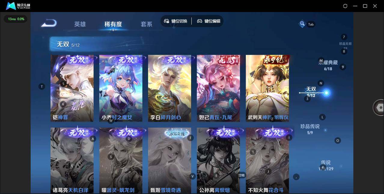 - [11737135]V6 2传说 122英雄 156皮肤 可修改实名 优质装备:炽阳神光 珍宝阁皮:女武神 限定皮:至尊宝,凤求凰(白切鸡),冰锋战神,梁祝,逐梦之星,李小龙,逐梦之影,孙行者 史诗皮:化蝶舞,龙之律动,雪豹·霜爪,石田雨龙,苍穹之光,白龙吟,黄金分割率,特工魅影,末日机甲-吕布,水果甜心,心灵骇客,幽灵船长,鬼剑武藏,缤纷独角兽,乘风破浪,逐浪之夏,圣诞狂欢,圣诞恋歌,鹰眼统帅