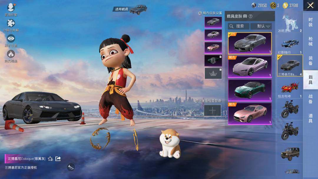 【粉色载具】:特斯拉Roadster(沁心粉),兰博基尼Estoque(银翼灰),阿斯顿马丁DBS(绿),玛莎拉蒂Ghibli(粉),幻影随行,焰龙咆哮,星梦玉骢,冰绡玉鳞