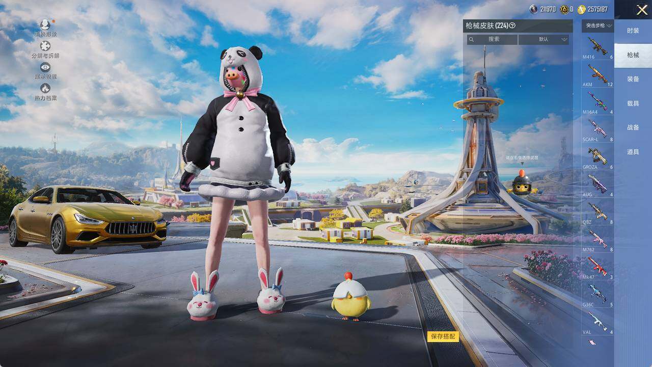 AKM-甜心宝贝,AKM-炫紫旋律,SCAR-L-梦幻火箭,M416-五爪金龙,M762-甜蜜誓约,Kar98K-伏魔团,Kar98K-巳巳如意,AWM-花间之火,AWM-橘柚倾心,DP-28-扶摇飞仙