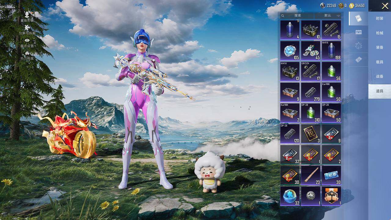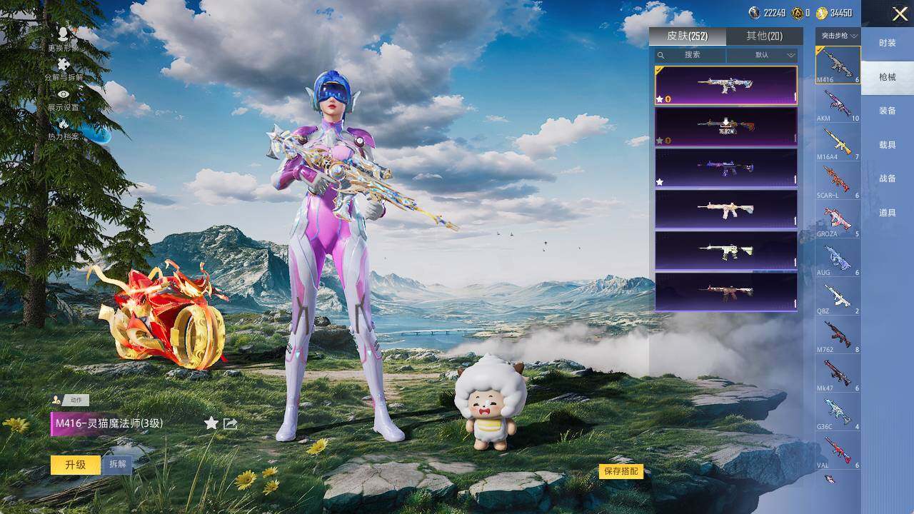 AKM-星际浪客,M16A4-垂柳戏鸭,M416-全功率超战,GROZA-旋转彩虹,AUG-星梦奇缘,Kar98K-巳巳如意,M417-第五大道,DP-28-圣堂之誓