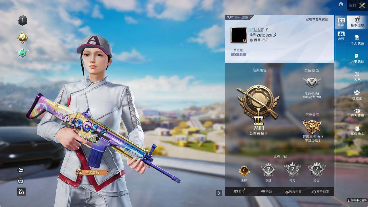 - PX_2026974- 可二次 安卓Q-38425热力值 5王牌印记 历史超级王牌10星 91套装 134枪皮 【2稀有】 AKM-缤纷海域 浪漫天命 【4粉装】 幻影 冷漠罗丽 宙之时溯 星云暗核 【4特效枪】 M416-超新星 (3级) AKM-绿萝繁花 (5级) Kar98K-巳巳如意 (4级) MG3-酷泡奶龙 (6级) 【6热门】 雪山精英 金羽特工 团圆交子 瑞龙福将 狂沙舞者 M76