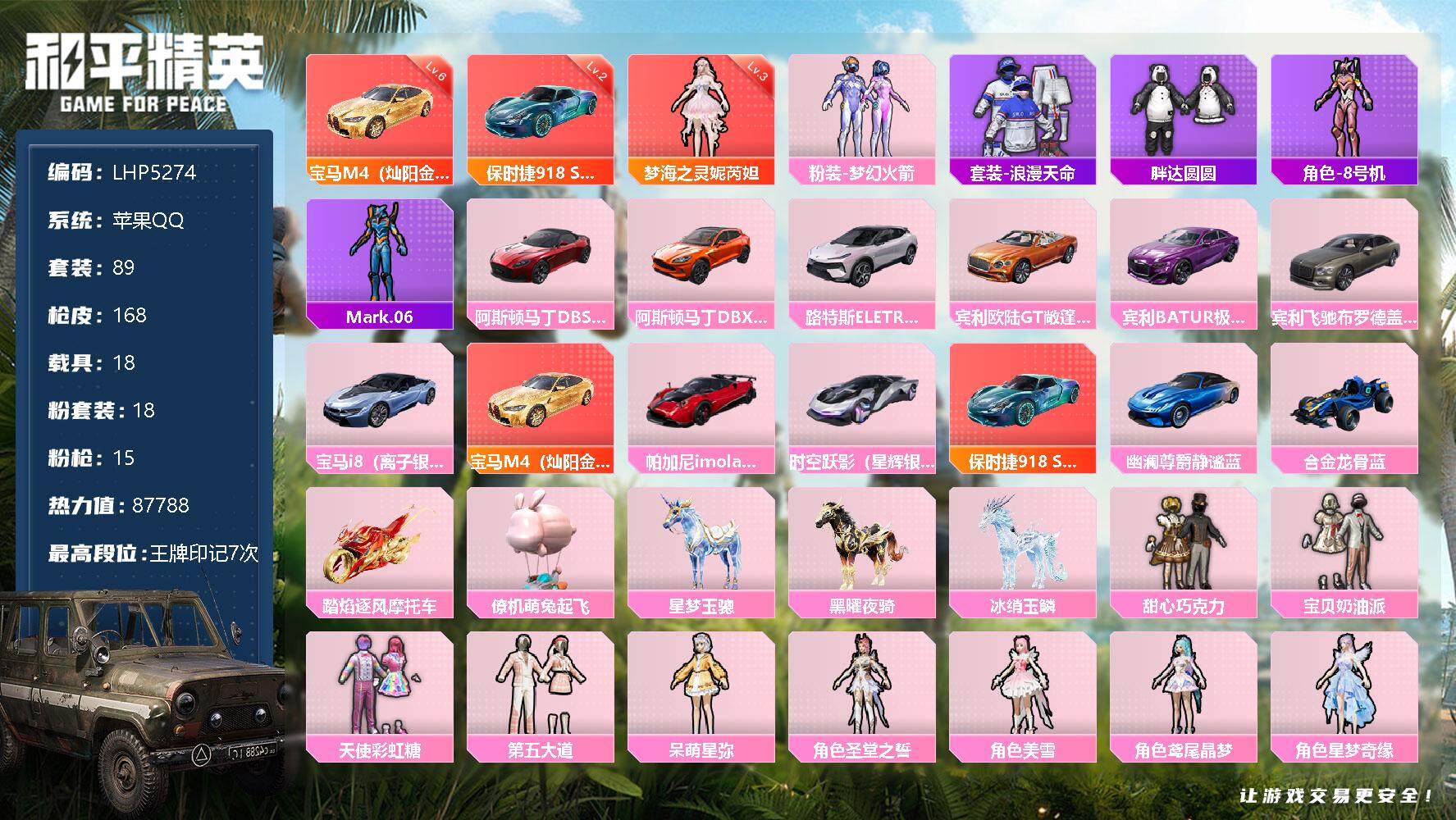 [12432856]素材身法号/宝马M4(灿阳金)(六级)/地铁满天赋【特价急出/详情看图】:苹果 手Q-1神装-18粉装-15特效枪-18载具-15粉色飞行器-8.7w热力值-7王牌印记-89套装-168枪皮【红色载具】:宝马M4(灿阳金)(六级),保时捷918 Spyder(玺耀绿)(二级)【红色神装等级】:梦海之灵-妮芮妲(三级)【热门品类】:粉装-梦幻火箭,套装-浪漫天命,套装-胖达圆圆,角色-8号机,角色-Mark.06【粉色载具】:阿斯顿马丁DBS(红),阿斯顿马丁DBX(橙),路特斯ELETRE(花绽灰),宾利欧陆GT敞篷(火焰橘),宾利BATUR(极速紫),宾利飞驰(布罗德盖棕双色),宝马i8(离子银),宝马M4(灿阳金),帕加尼imola(光影红),时空跃影(星辉银),保时捷918 Spyder(玺耀绿),幽澜尊爵(静谧蓝),合金龙骨(蓝),踏焰逐风摩托车,僚机-萌兔起飞,星梦玉骢,黑曜夜骑,冰绡玉鳞【粉色套装】:粉装-甜心巧克力,粉装-宝贝奶油派,粉装-天使彩虹糖,粉装-梦幻火箭,粉装-第五大道,角色-呆萌星弥,角色-圣堂之誓,角色-美雪,角色-鸢尾晶梦,角色-星梦奇缘,角色-初号机 觉醒Ver.,角色-金域紫灵,粉装-金丰海韵,角色-萨利娅,角色-女娲灵识,角色-奇迹舞步 贝贝,角色-奇迹舞步 美雪【粉色枪皮等级】:AKM-魔法神域(三级),SCAR-L-时空协奏(三级),M416-女娲灵识(一级),M416-灵猫魔法师(三级),GROZA-巴啦啦小魔仙(五级),AUG-圣斗士星矢(五级),UMP45-宇宙意志(三级),AKS-74U-信仰神谕(五级),Kar98K-巳巳如意(五级),M24-镜域双华(一级),M417-第五大道(一级),M200-梦海之灵(三级),DP-28-豹影疾电(五级),MG-36-幻彩电音(三级)【粉色飞行器】:酣梦熊熊飞行器,梦幻火箭飞行器,镜域双华-灵镜之阶,龙翔九天飞行器,幻海精灵飞行器,星梦奇缘飞行器,深渊漩涡飞行器,曦光华影飞行器,幽焰列车飞行器,凤舞九天飞行器,圣域金龙飞行器,雀灵庇佑飞行器,灵猫魔法师飞行器,灵珠游龙飞行器