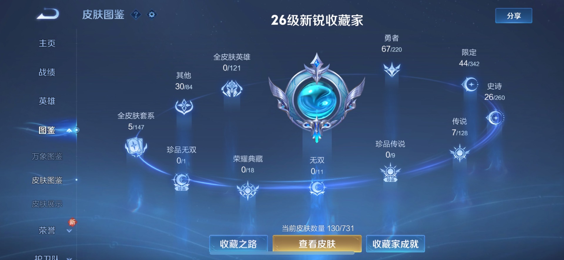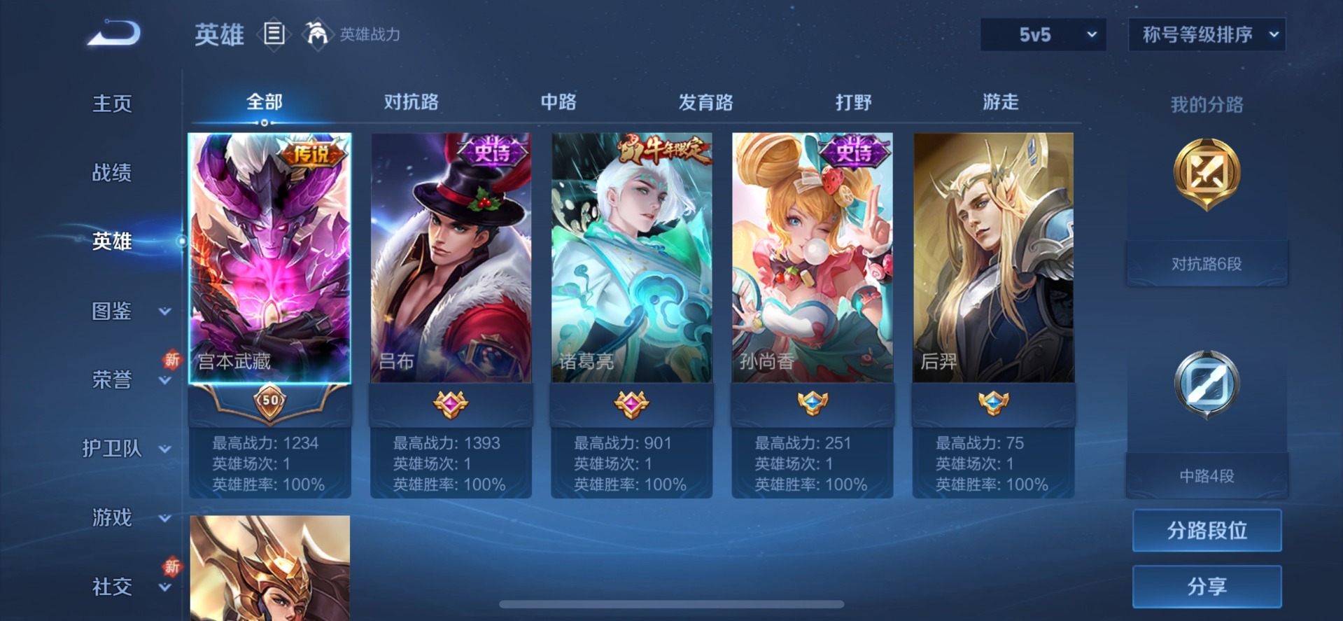 - PX_2023139-贵族等级: V5 英雄数: 53 皮肤数: 28 传说皮: 久胜战神,挚爱之约