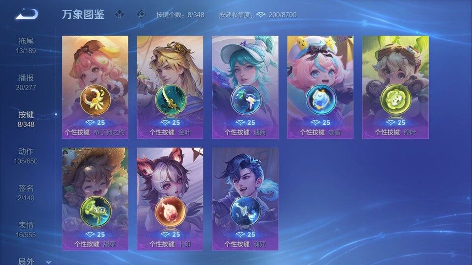 伽罗箭羽风息,李元芳逐浪之夏,大乔猫狗日记,阿轲节奏热浪,露娜紫霞仙子,诸葛亮黄金分割率,王昭君偶像歌手,韩信白龙吟,项羽苍穹之光,阿轲暗夜猫娘,雅典娜冰冠公主,吕布末日机甲,鲁班七号电玩小子,墨子龙骑士,嬴政摇滚巨星,刘禅绅士熊喵,刘禅天才门将,白起星夜王子,安琪拉心灵骇客,程咬金功夫厨神,刘邦德古拉伯爵,兰陵王暗隐猎兽者,曹操幽灵船长,宫本武藏鬼剑武藏,亚瑟心灵战警,钟馗乐园奇幻夜,蔡文姬舞动绿茵,廉颇地狱岩魂,西施诗语江南,小乔缤纷独角兽,夏侯惇乘风破浪,花木兰水晶猎龙者,墨子金属风暴,百里玄策原初追逐者,吕布圣诞狂欢,貂蝉圣诞恋歌,百里守约特工魅影,嬴政暗夜贵公子,高渐离燃音魔法,伽罗琥珀纪元