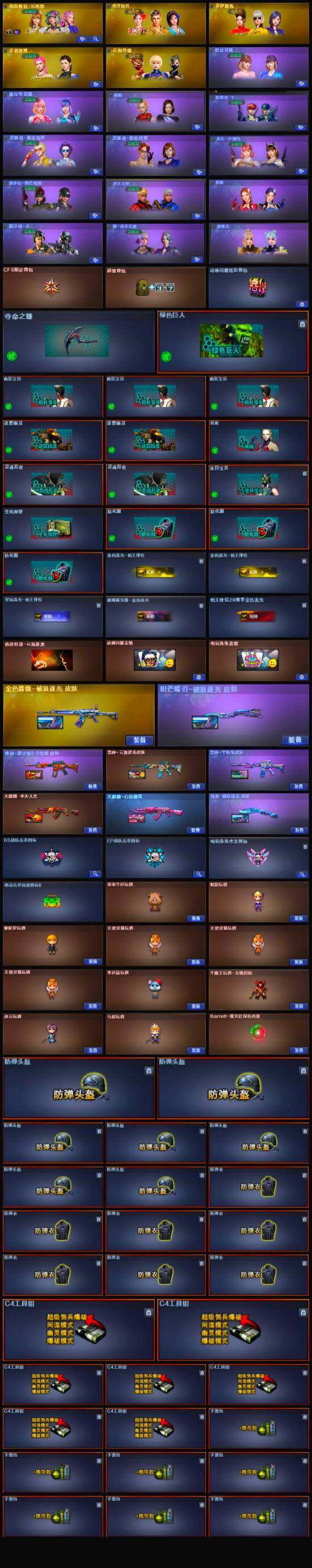 【英雄级武器】:柯尔特-竞技荣光,擎天-竞技荣光,高爆手雷-竞技荣光,烟雾弹-竞技荣光,闪光弹-竞技荣光,COP 357-幻灵,烈火-动感闪耀,天神-动感闪耀,屠龙-动感闪耀*2,手雷-动感闪耀,QBZ03-金色蔷薇,白虎-电玩蓝兔,无影-神兵利器,M4A1-雷神*2,RPK-盘龙*5,AK47-火麒麟*2,Barrett-毁灭*2,AK47-黑鲨,黑武士-锦绣游龙,超新星-热带奇洋,AK47-B-战神,沙鹰-天神,沙鹰-修罗*3,炽芒蝶刃,龙啸*4,屠龙,擎天-云海游龙,龙啸-热带奇洋
