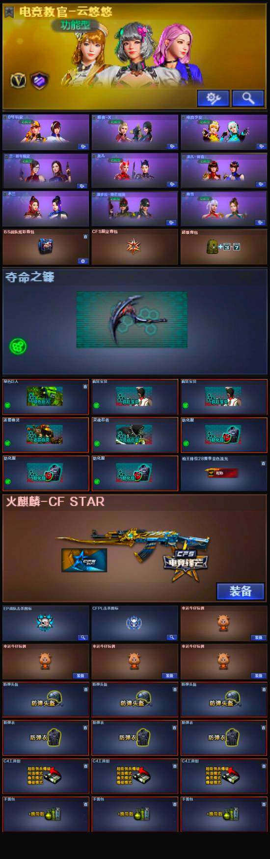 - PX_2004176-2级幽焰骑士-维塔 粉装-金曜白虎,粉装-草莓生巧,粉装-蓝莓炮弹,粉装-岚岚物语 角色-瑰梦爱神 枪械 : M416-五爪金龙,AUG-暖羊咩咩,Kar98K-巳巳如意 【稀有武器皮肤】:AKM-彩虹符号,AKM-恐龙拽拽,AKM-环太平洋,AKM-虎虎生威,M16A4-凝视深渊,M16A4-幻世战舞者,M16A4-甜心亚梦,SCAR-L-炫彩节奏,SCAR-L-玉兔迎