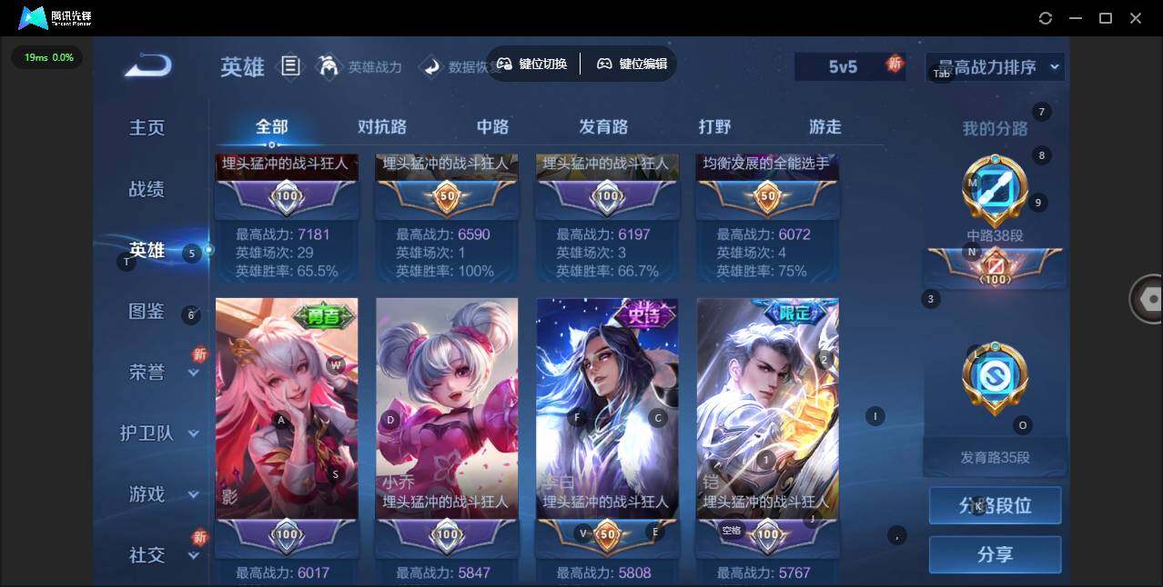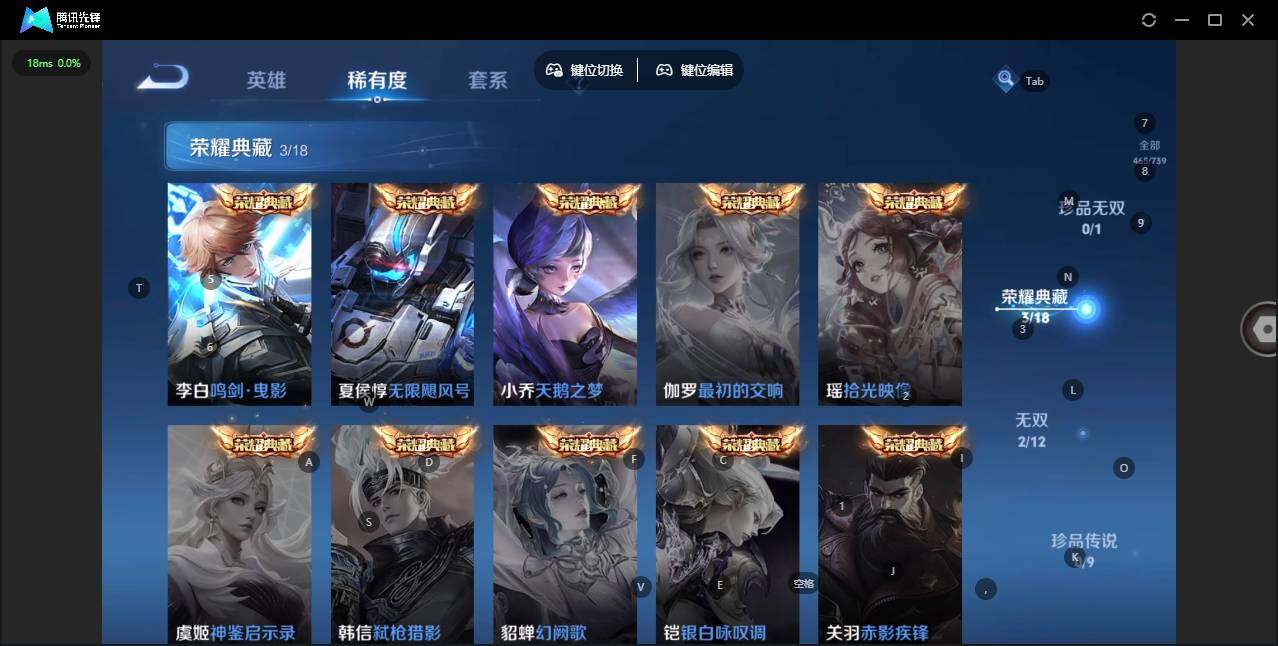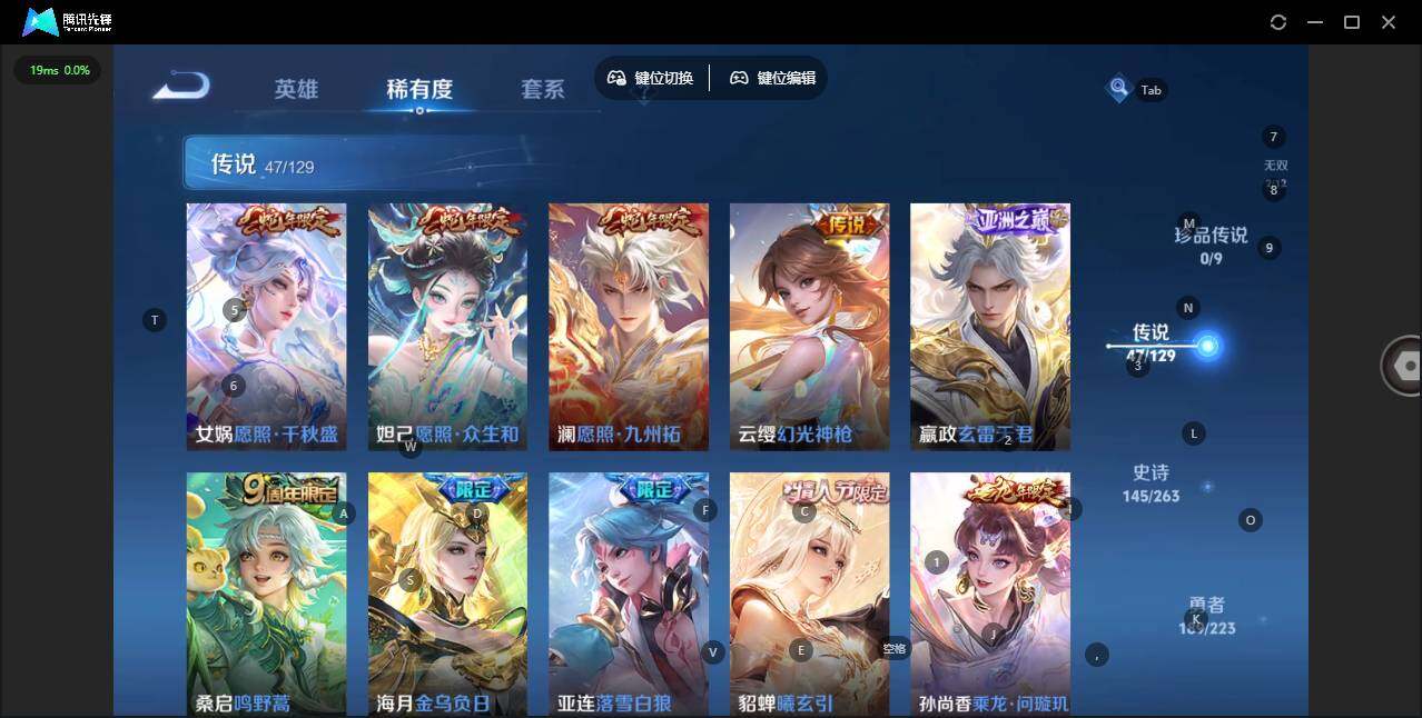 - [11864162]V6 4传说 106英雄 96皮肤 可修改实名 优质装备:猫影幻舞,仲夏夜之梦(大飞蛾) 珍宝阁皮:蔷薇恋人 限定皮:愿照·福禄聚(蔡文姬年限),鸣野蒿,五谷丰年,梁祝 史诗皮:化蝶舞,幻珠鲛人,夜落电台,遇见神鹿,特工魅影,江河有灵,末日机甲-吕布,乱世虎臣,女仆咖啡,水果甜心,心灵骇客,时之奇旅-安琪拉,暗隐猎兽者,拒霜思,缤纷独角兽,逐浪之夏,水晶猎龙者,箭羽风息,圣诞恋歌,鹰眼统帅