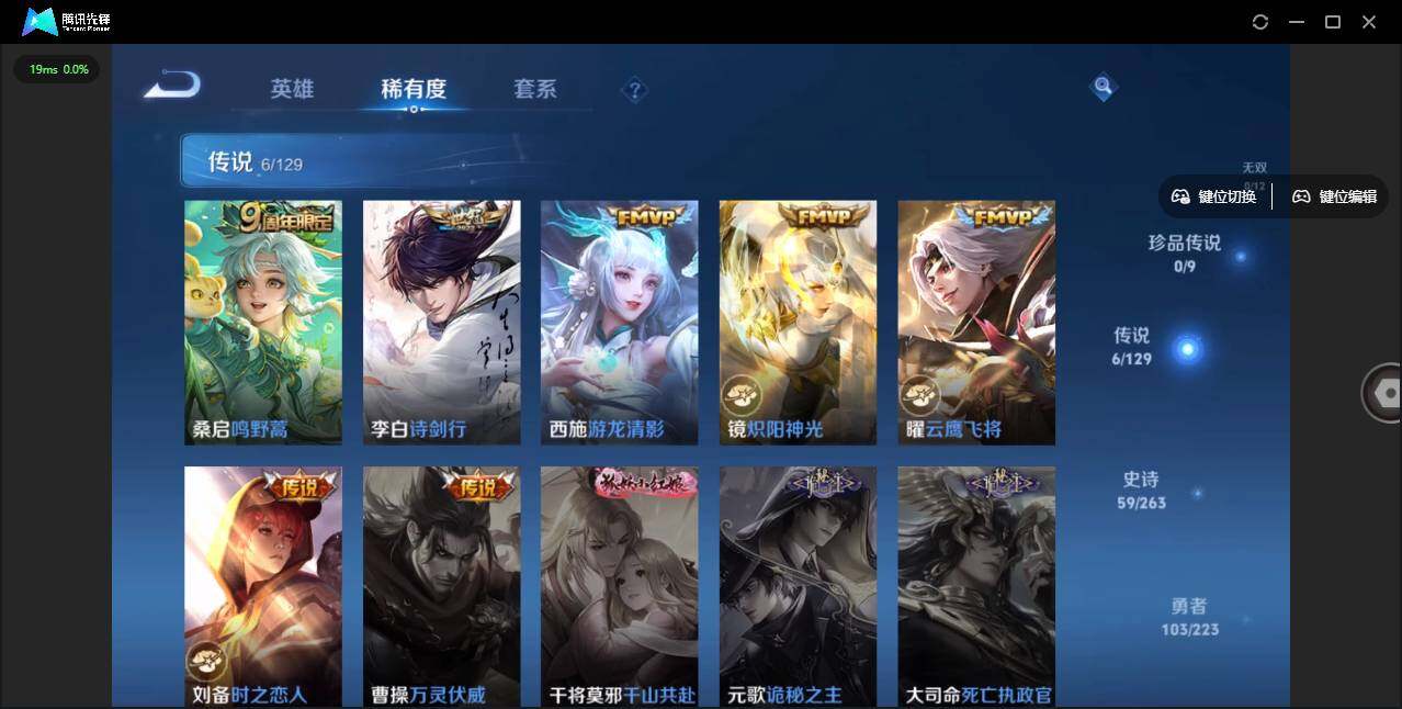 - PX_2094570-43 安卓QQ/至尊星耀/156皮肤/122英雄/1典藏/1珍品无双/0无双/2珍品传说/11传说/35史诗/7稀有英雄 【1 珍品无双】馥梦繁花, 【2 珍品传说】酷洛米之心 安琪拉,大耳狗之梦 瑶, 【1 典藏皮肤】拾光映像 瑶, 【11 传说皮肤】启明星使 虞姬,逐花归海 澜,地狱火 孙悟空,游龙清影 西施,猫影幻舞 貂蝉,仲夏夜之梦 貂蝉,炽阳神光 镜,乞巧织情 王昭