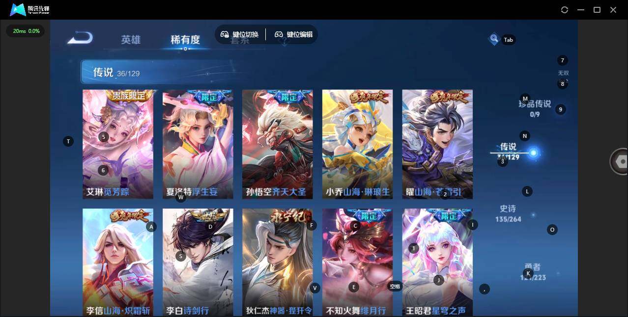 - [11603754]V6 5传说 123英雄 154皮肤 可修改实名 优质装备:久胜战神,地狱之眼,碎云 珍宝阁皮:玩趣恶龙 限定皮:愿照·九州拓(澜年限),鸣野蒿,梁祝,天狼绘梦者,李小龙,大圣娶亲 史诗皮:化蝶舞,星界战将,百相守梦-百里守约,破空之剑,特工魅影,千年之狐,冰冠公主,水果甜心,星夜王子,心灵骇客,功夫厨神,暗隐猎兽者,鬼剑武藏,天秀·启明,舞动绿茵,纤云弄巧,繁星吟游(呼啦呼啦),缤纷独角兽,乘风破浪,逐浪之夏,月团寄思,水晶猎龙者,鹰眼统帅,魅力维加斯