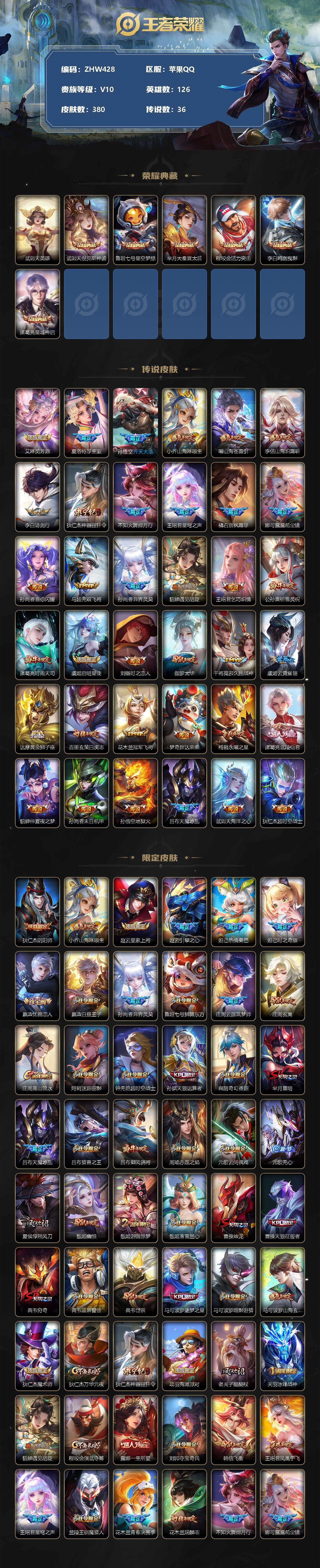 [12450596]【特价急出/详情看图】:苹果Q-V10-永恒钻石I段位-126英雄-380皮肤-7典藏-36传说-134史诗