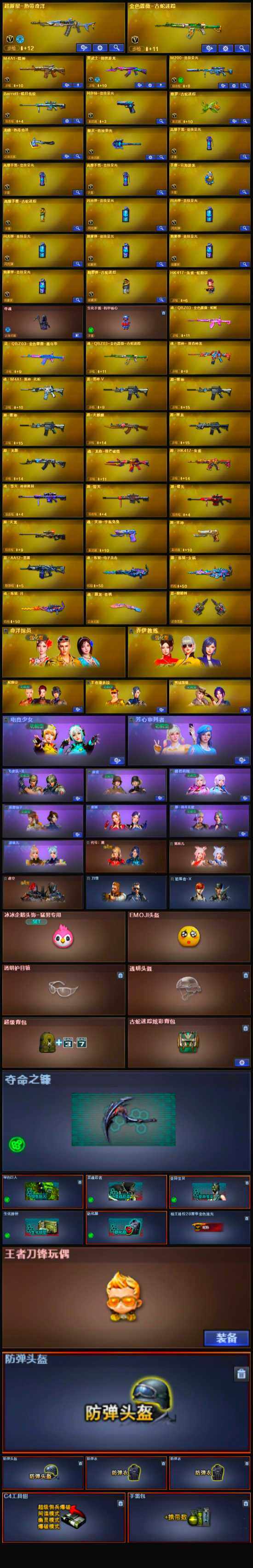 - [11386172]4粉装 4特效枪 9印记 可二次 可修改实名 身法装备:初号机 觉醒Ver.(新紫螳螂),Mark.06(新蓝螳螂) 优质装备:UMP45量子极限,千金淑猫,GROZA-镜光银凌,羊梦糖心,Kar98K-巳巳如意 热门装扮:紫电风暴,初号机 觉醒Ver.(新紫螳螂) 稀有枪皮:DP-28-豹影疾电 五级特效枪:五级UMP45-量子极限,五级GROZA-镜光银凌,五级Kar98K-巳巳如意,五级DP-28-豹影疾电 紫色装扮:浪漫假日,SS31特训套装,冷焰舞者,千禧之恋,霓虹热舞,旭日情侣,SS33特训套装,顶瓜瓜,长空猛禽,霓虹街区,缤纷果语,耀眼新星,蓝彩潮人,魅力单车,黄色运动,龙的传人,龟仙人,冰河战士,龙魂突击队,蝶变,香桃花海,夏日倾情,登山爱好者,白色伏地魔,破蛋小黄鸡,空岛之星,燃烧卡路里,粉日山川,小熊娃娃,雏菊兔兔,萝兰蝴蝶,SS29特训,创世·幻影,纯真浪花,热情海星,SS28特训,卖崽青蛙,创世·追猎,奶油梦幻熊,Mark.06(新蓝螳螂),光矢逐梦,异域银装,鱼渊荷华,燕燕于飞,海琴烟,熊抱抱,青团波波,糖糖葫芦,棉花软糖,竞技名士,摩登魅猫,街头风暴,银尘,情公主,焰鹰斗篷,幻羽潜行,SS27特训,浪漫天命,小丑鱼,智谋强哥,大橘大利,蓝冰羽,紫幽梦,SS32特训服(SS32特训套装),绯格组合,自由猎手,纯白跃动,蓝调潮影,糖霜甜心,恋语绒绒,光之冒险 优质战备:墨龙九天降落伞,精灵梦叶罗丽降落伞,初号机 觉醒Ver.降落伞,江南烟雨降落伞,镜域双华-灵镜之阶,喜羊羊与灰太狼降落伞,鬼刀降落伞,金蛇镇世降落伞,智耀战神降落伞