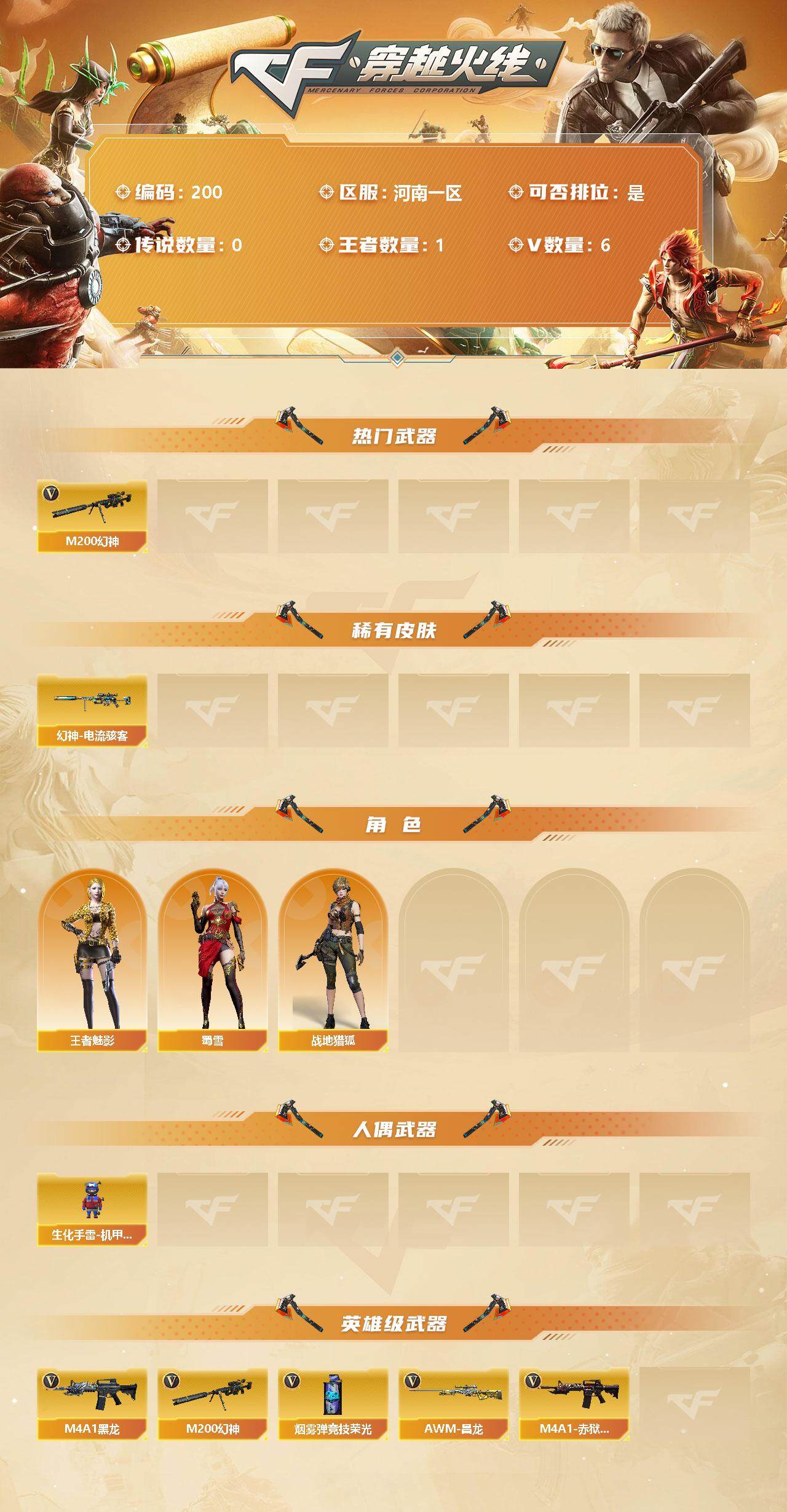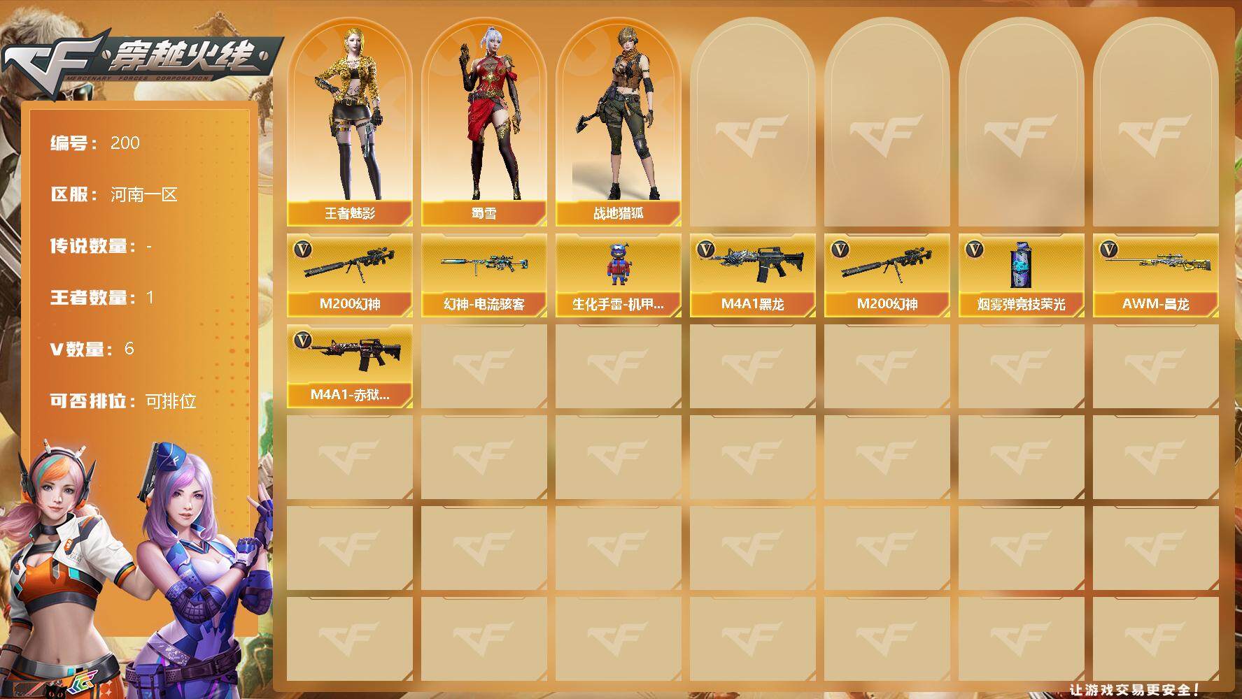 [12451486]【200】5V/80级/将帅/1王者/1英雄/M200-幻神/幻神-电流骇客/王者-魅影/战地猎狐/蜀雪/生化手雷-机甲核心/烟雾弹-竞技荣光/M4A1-黑龙/AWM-昌龙/M4A1-赤狱骑士