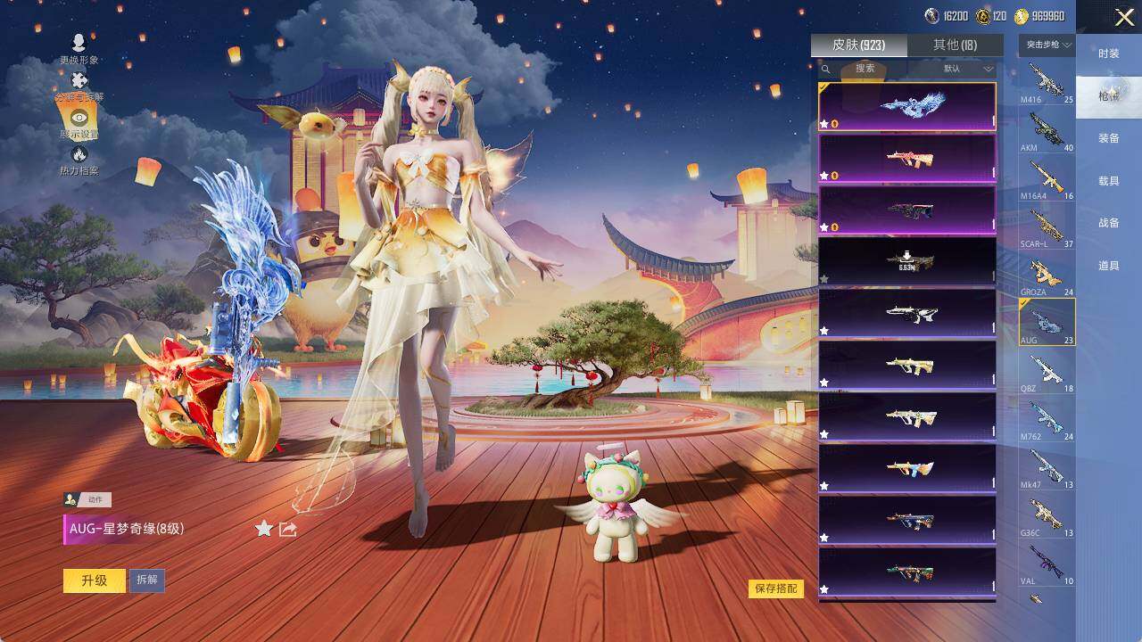 AKM-甜心宝贝,AKM-炫紫旋律,AKM-梦之光华,AKM-盖世英雄,AKM-魔法神域,AKM-幽焰骑士,M16A4-垂柳戏鸭,SCAR-L-梦幻火箭,SCAR-L-童趣迷兔,SCAR-L-纯梦嫁纱,SCAR-L-金蛇镇世,M416-五爪金龙,M416-心之恋语,M416-风花雪月,M416-至情至圣,M416-超新星,M416-墨龙九天,GROZA-香水柠檬,GROZA-焦糖拿铁,GROZA-超新星,GROZA-精灵之光,AUG-星之彼岸,AUG-妙趣可丽,AUG-星梦奇缘,M762-甜蜜誓约,M762-激战未来,M762-冷魅冰骑,蜜獾-辉耀战甲,UZI-绮梦青鸾,UMP45-恐龙拽拽,UMP45-玉魂晶魄,UMP45-宇宙意志,Vector-红伞翩翩,Vector-环太平洋,汤姆逊-怪笑疯兔,汤姆逊-荒漠赏金,AKS-74U-信仰神谕,P90-甜蜜草莓,P90-沙丘之主,Kar98K-伏魔团,Kar98K-未来歌姬,Kar98K-巳巳如意,Kar98K-圣域龙灵,M24-星之信仰,M24-暗星紫秘,M24-莲影清波,M24-镜域双华,AWM-焰龙焚天,AWM-橘柚倾心,SKS-诡面斩,VSS-烈焰拳霸,Mini14-荧光虫舞,Mk14-闲梦青缨,Mk14-精灵梦叶罗丽,Mk14-盛世惊鸿,AMR-炫光之旅,AMR-鸢尾晶梦,M417-第五大道,M200-梦海之灵,S12K-海渊国主,SPAS-12-音爆索尼克,M249-古战神甲,M249-绒雪飘舞,M249-彩虹甜喵,DP-28-扶摇飞仙,DP-28-暗夜鎏金,DP-28-圣堂之誓,DP-28-千金淑猫,MG3-洛神天依,PKM-天星战神,PKM-江南烟雨,爆炸猎弓-雪梅暗香,爆炸猎弓-拳皇·狂花道,平底锅-林间仙鹿,平底锅-仲夏莫吉托,烟雾弹-猫咪绅士,破片手榴弹-粉粉猫爪,破片手榴弹-秋玉花灯