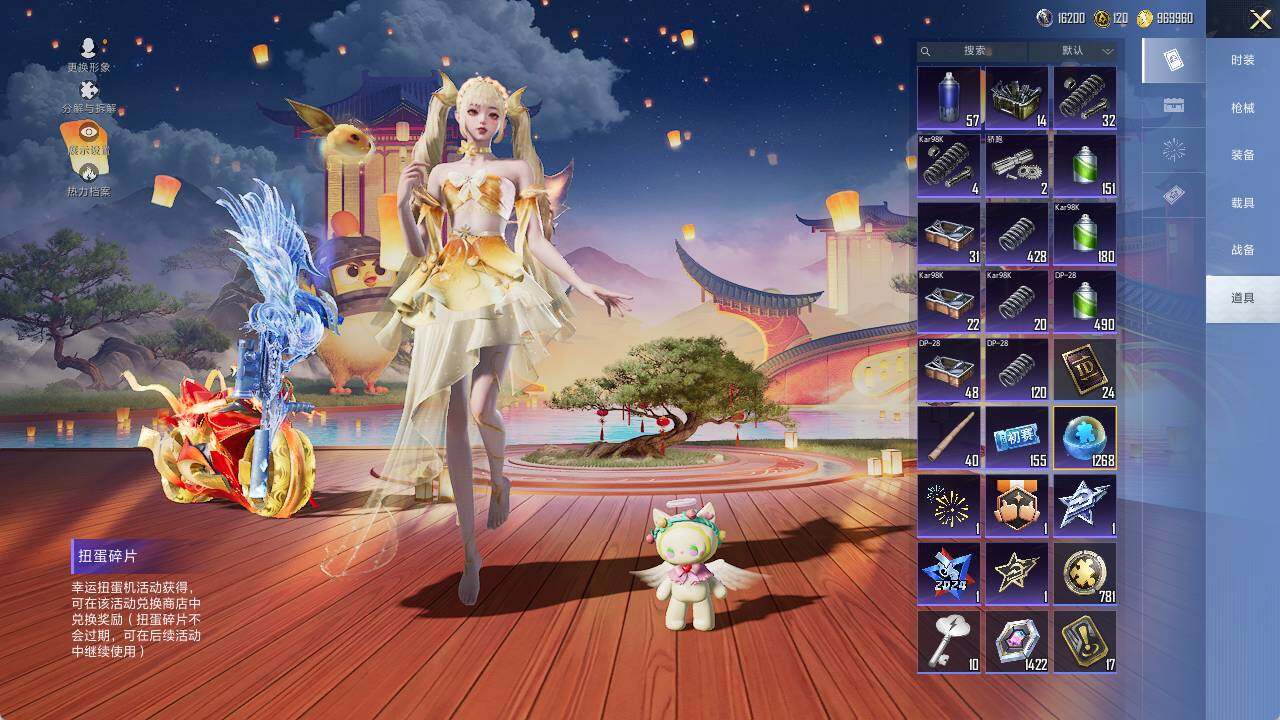- [12201909]3粉装 4特效枪 5印记 可二次 可修改实名 身法装备:暗影哥特(红眼罩) 优质装备:梦幻火箭(新101)(新火箭少女101粉色套装),缤纷油彩(猪妹猪脸妹),M416-女娲灵识,AUG-暖羊咩咩,AMR-智耀战神,Kar98K-巳巳如意 热门装扮:傲傲奶龙 六级特效枪:六级AMR-智耀战神 五级特效枪:五级Kar98K-巳巳如意,五级AUG-暖羊咩咩 三级特效枪:三级M416-女娲灵识 紫色装扮:SS31特训套装,SS23特训,云朵鹅,彩虹兔,雪绒豹,SS33特训套装,顶瓜瓜,SS22特训,千禧之恋,完美偶像,帅气教官,幻世战舞者,冰川特警,SS21特训,瑞龙福将,团圆交子,SS17特训,捷德奥特曼,艾克斯奥特曼,赛罗奥特曼,SS20特训,SS18特训,SS19特训,风暴特警,骑行爱好者,魅力单车,龙的传人,青年教官,都市漫游者,长空猛禽,霓虹街区,蓝海鲸歌,探宝勇士,沙漠毒蛇,绮丽涂鸦,缤纷果语,耀眼新星,虎虎生威吉莉,竞技达人朋克,福星高照,空岛之星,空投萌叽,鱼渊荷华,玉兔迎春,燕燕于飞,巳巳如意,竞技名士,绒宝小鹅,异域银装,暗影哥特(红眼罩),红熊茄茄,果汁能量,SS26特训,大橘大利,白糯汤圆,青玉碎影,紫幽梦,Z.I.B特工,SS32特训服(SS32特训套装),蓝冰羽,光之冒险,粉恋花,恋语绒绒 优质战备:幻星舰长降落伞,幻彩电音降落伞,智耀战神降落伞,梦幻火箭降落伞,暗夜玫瑰降落伞