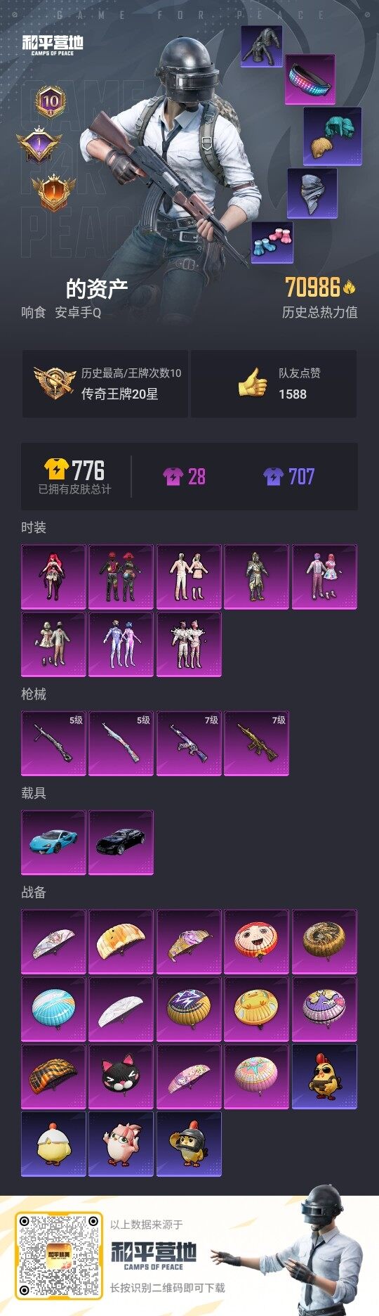 - PX_2087802- 可二次 安卓手Q-11王牌印记-8粉装-5特效枪-2载具-55526热力值-121套装-169枪皮-2卓越印记-0传奇印记 【8粉装】,灵感创作师,花间之火,炫光之旅,冰川幽秘,彩虹鹿灵,山涧鹿灵,星之彼岸,烟云彩露 【5特效枪】,AKM-梦之光华-7级 SCAR-L-锦绣绵绵-5级 M416-五爪金龙-7级 Kar98K-巳巳如意-5级 UMP45-量子极限-5级 【5