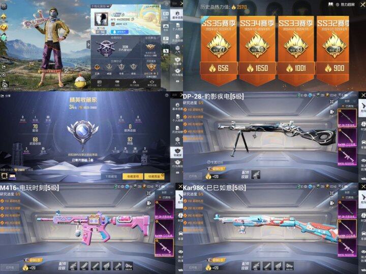 【粉色枪皮等级】:M416-电玩时刻(五级),Kar98K-巳巳如意(五级),DP-28-豹影疾电(五级)