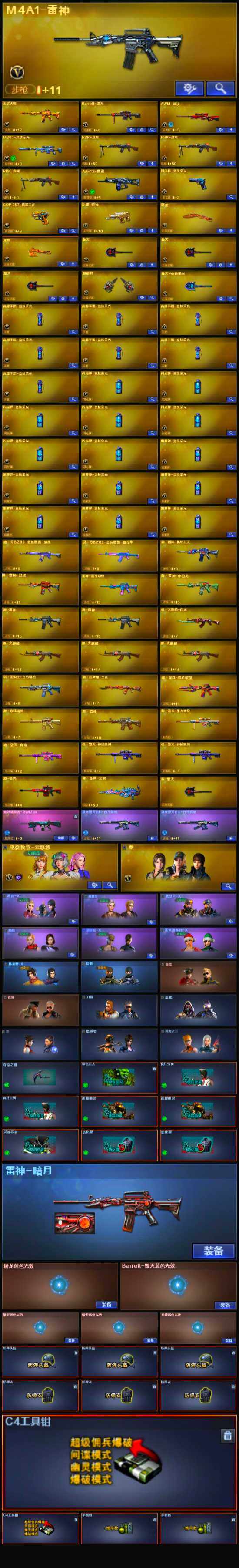 【英雄级武器】:M200-竞技荣光,柯尔特-竞技荣光,擎天-竞技荣光,高爆手雷-竞技荣光*7,烟雾弹-竞技荣光*7,闪光弹-竞技荣光*7,M4A1-雷神,RPK-盘龙*3,Barrett-毁灭,AWM-裁决,AA-12-雷霆,AK-47-猩红传说,沙鹰-天神,麒麟刺,擎天*3,龙啸,屠龙