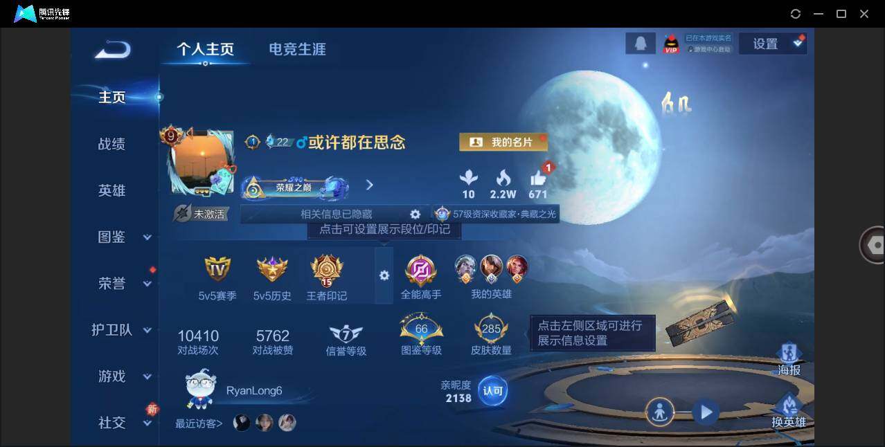 - PX_2102677-实名: 可修改 贵族等级: V4 英雄数: 119 皮肤数: 87 传说皮: 星之鸣奏 限定皮: 五谷丰年,至美·乘鲤谣,鸣野蒿,愿照·众生和