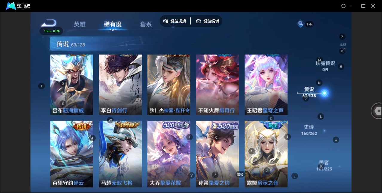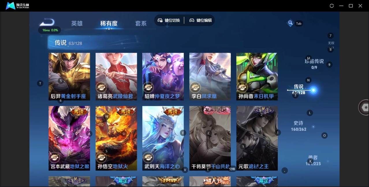 - [11764297]V9 1典藏 1珍品传说 39传说 122英雄 298皮肤 可修改实名 优质装备:银白咏叹调(倪克斯侍卫),怪盗基德,黄金射手座,黄金白羊座,久胜战神,炽阳神光,一念神魔,云霓雀翎,末日机甲-孙尚香(绿蚂蚱),仲夏夜之梦(大飞蛾),飞鸢探春,音你心动-周瑜,胖达荣荣,李逍遥,时之恋人-刘备(电焊工),游龙清影(小青龙),淬星耀世,超时空战士-狄仁杰,挚爱之约,无双飞将,音你闪耀(rap皮),碎云,山海·炽霜斩(李信年限),山海·苍雷引(电光曜子),炽翼辉光(娃娃菜牛角包),浮生妄,电玩·雷克斯,遇见神鼓,澜逐花归海 传说皮:典韦战鼓燎原,落雪白狼 珍宝阁皮:女武神 限定皮:愿照·九州拓(澜年限),陌上桑,鸣野蒿,夏侯惇霜北刀,至尊宝,异界灵契(白毛香),神威(电光马子),瑞麟志(木兰年限),齐天大圣,怒海麟威,五谷丰年,青龙志(铠年限),天狼狩猎者,龙胆,天狼溯光者,天狼绘梦者,李小龙,玄武志(苏烈年限),朱雀志(守约年限),孙行者,乒乒小将,百木心枪,启示之音,无尽星芒,深海之息(深海大菠萝),唐三藏,时之奇旅-妲己,山海·玄木吟(马可年限) 史诗皮:狼魂孤将,谪仙醉月,石田雨龙,破空之剑,蔬乡物语(鲁班七号),百相守梦-百里守约,紫霞仙子,苍穹之光,黄金分割率,特工魅影,千年之狐,永昼,魅语,高渐离燃音魔法,蒙恬荣光圣徽,无限星赏官,冰冠公主,青蛇,偶像歌手,晚萤,电玩·爆裂旋风,末日机甲-吕布,猫狗日记-大乔,时之恋人-孙尚香,乱世虎臣,节奏热浪,修罗,女仆咖啡,摇滚巨星,水果甜心,绅士熊喵,星夜王子,心灵骇客,功夫厨神,德古拉伯爵,暗隐猎兽者,幽灵船长,鬼剑武藏,暗渊魔法,心灵战警,乐园奇幻夜,舞动绿茵,地狱岩魂,乘风破浪,逐浪之夏,月团寄思,水晶猎龙者,曙光守护者,箭羽风息,唤灵魅影,金属风暴,圣诞狂欢,圣诞恋歌,鹰眼统帅,魅力维加斯,赏金猎手,千筹问战,无心,未来纪元-赵云