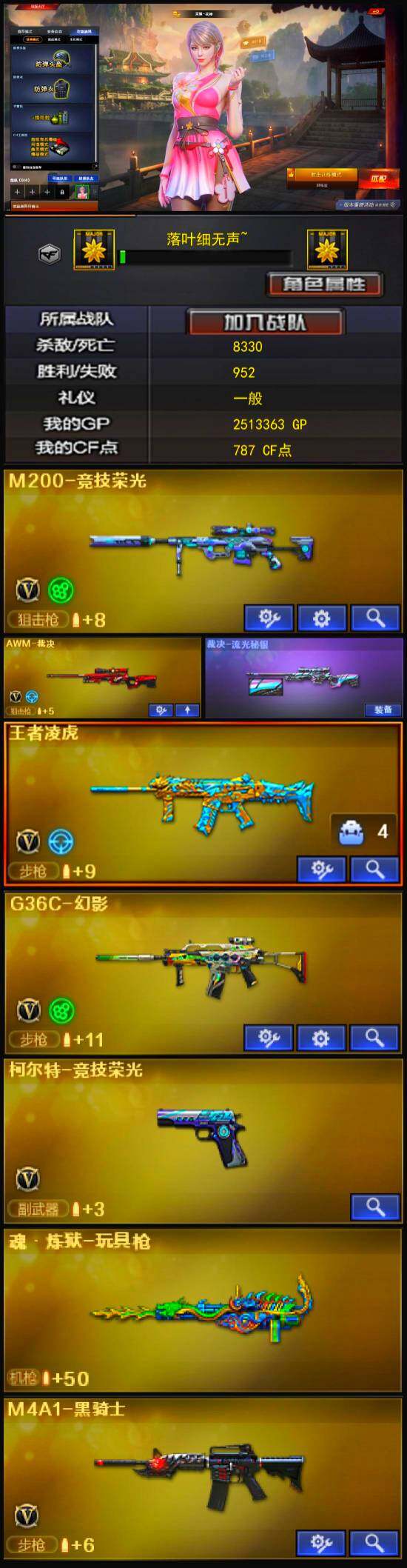 - [12175789]【商品标题】:陕西一区-87V-22王者-1炫金 【热门武器】:传说暗裔,QBZ03-金色蔷薇,Scar Light-白虎,HK417-朱雀,M200-幻神,死亡之眼*2,荣耀世冠-火麒麟,荣耀世冠-柯尔特,金色小号,M4A1-黑骑士,汤姆逊-烈龙*6,RPK-盘龙*6,加特林-炼狱*2,斯泰尔-蝴蝶,USP-雷暴,沙鹰-修罗,Knife-冠军之刃,荣耀世冠-龙啸,金刚伞 【王者炫金武器】:炫金毁灭 【音效卡】:幻神音效卡,雷神音效卡,毁灭音效卡,火麒麟音效卡,极光音效卡,黑骑士音效卡 【稀有皮肤】:幻神-冠军之幻,M200-幻神-荣耀世冠白鲨,Scar Light-白虎-暗星,QBZ03-荣耀世冠白鲨,QBZ03-巅峰荣耀皮肤,雷神-荣耀之魄,雷神-虎将,火麒麟-冠军之心,火麒麟-轻羽皮肤,火麒麟-平天大圣,火麒麟-心动糖果,黑骑士-暗月,炼狱-星空,毁灭-暗月,毁灭-冠军之怒,毁灭-黑大圣皮肤,M200-庆典-CFS 2021,AWM-CFS 2020,屠龙-荣耀之锋 【角色】:王者零-传说之路,王者-葵-貂蝉,王者-魅影,王者-救世主,王者-迷迭香,王者玲珑-小乔,电竞教官-云悠悠,蜀雪,魅影,炽天使,铁骑荣耀,职业选手,青霞仙子 【人偶武器】:斯泰尔-蝴蝶,迷你深渊冰龙,迷你艾比,天龙-曼陀罗,火麒麟-灵狐,迷你巨石泰坦-魔花研究所,迷你牛魔王,夺魂,迷你牛牛*3,迷你生化手雷,灵狐娃娃手雷,深渊终结者手雷,闪光弹-貂蝉,高爆手雷-大乔 【暴走生化】:斯泰尔-蝴蝶,死亡之眼*2,异变清道夫,超级对讲机 【挑战大师】:神圣爆裂者III,KAC-圣炎切割者III,激光毁灭者III*2,冰龙粉碎者-白马银枪 【其他武器】:柯尔特-竞技荣光*2,擎天-竞技荣光,高爆手雷-竞技荣光*4,烟雾弹-竞技荣光*5,闪光弹-竞技荣光*5,幻灵之锋*2,USP-雷暴,斩神刀-雷暴,无影-神兵利器,M4A1-雷神,M4A1-黑龙,M4A1-玫瑰精灵,M4A1-黑骑士,RPK-盘龙*6,加特林-炼狱*2,汤姆逊-烈龙*6,AK47-无影,AK47-火麒麟,AK12-天启,AWM-天龙,Barrett-毁灭,Barrett-极光,沙鹰-修罗,沙鹰-天神*2,擎天,屠龙,麒麟刺,AWM-裁决,AA-12-雷霆,Barrett-朱雀,M200-幻神,M4A1-猎神,M4A1-千变 【特