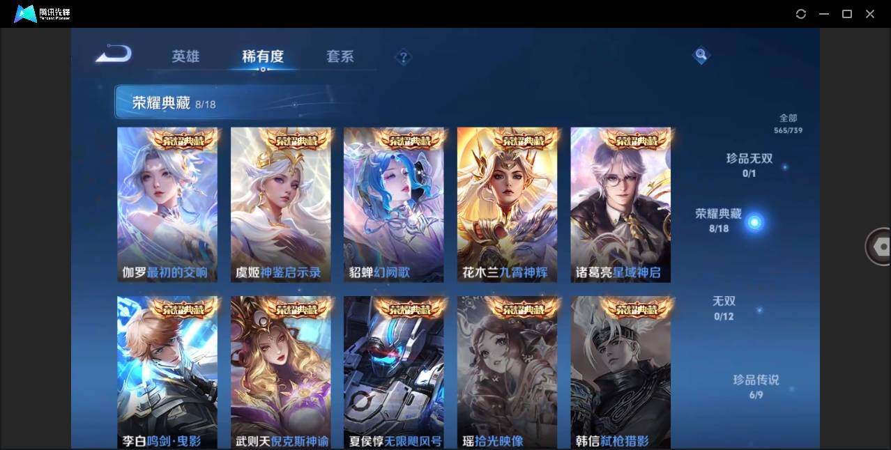 【荣耀典藏】:武则天英雄,武则天倪克斯神谕,夏侯惇无限飓风号,李白鸣剑曳影,诸葛亮星域神启,花木兰九霄神辉,貂蝉幻阙歌,虞姬神鉴启示录,伽罗最初的交响