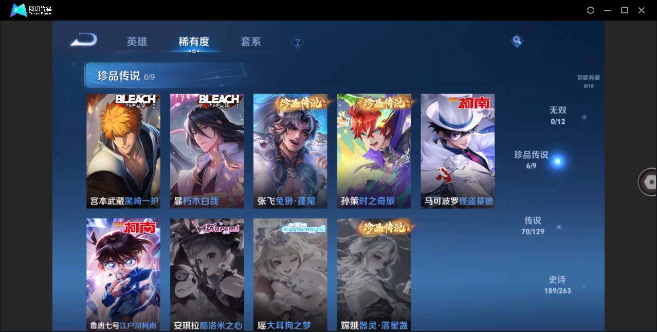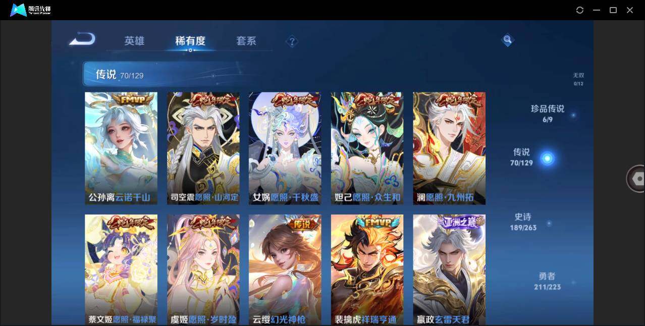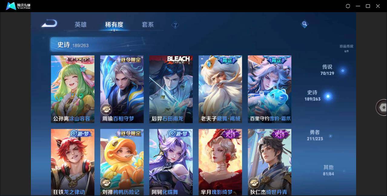 - [12279787]V9 2典藏 1珍品无双 4珍品传说 24传说 125英雄 234皮肤 可修改实名 女号 优质装备:馥梦繁花,无限飓风号(高达),弑枪猎影(韩信典藏),酷洛米之心,朽木白哉,黑崎一护,黄金狮子座,黄金射手座,云鹰飞将(小将军),绛天战甲(鸡嘴战神),黄金白羊座,久胜战神,炽阳神光,一念神魔,地狱火,地狱之眼,飞鸢探春,时之恋人-刘备(电焊工),淬星耀世,挚爱之约,鹤羽星尊,妄想实况,惊梅引 珍品传说:兔狲·蓬尾 传说皮:云诺千山 珍宝阁皮:玩趣恶龙 限定皮:至尊宝,白虎志(电光耗子),凤求凰(白切鸡),神威(电光马子),遇见飞天,怒海麟威,五谷丰年,武圣,梁祝,天狼溯光者,天狼绘梦者,李小龙,朱雀志(守约年限),冰霜恋舞曲,寅虎·瑞焰(虎皮蛋子),神器·万象笔 史诗皮:鸭鸭历险记-刘禅,化蝶舞,龙之律动,雪豹·霜爪,藏狐·褐绒,布丁狗之誓,小牛鸭,石田雨龙,百相守梦-周瑜,决胜骁骑,紫霞仙子,苍穹之光,电玩小子(小书包),白龙吟,黄金分割率,特工魅影,千年之狐,永昼,魅语,偶像歌手,暗夜猫娘,百相守梦(关羽),龙骑士(小龙虾),猫狗日记-大乔,时之恋人-孙尚香,节奏热浪,修罗,摇滚巨星,水果甜心,绅士熊喵,天才门将,星夜王子,心灵骇客,功夫厨神,德古拉伯爵,暗隐猎兽者,幽灵船长,心灵战警,天秀·启明,舞动绿茵,地狱岩魂,纤云弄巧,繁星吟游(呼啦呼啦),缤纷独角兽,乘风破浪,逐浪之夏,水晶猎龙者,曙光守护者,箭羽风息,圣诞狂欢,圣诞恋歌,鹰眼统帅,王者之锤,魅力维加斯