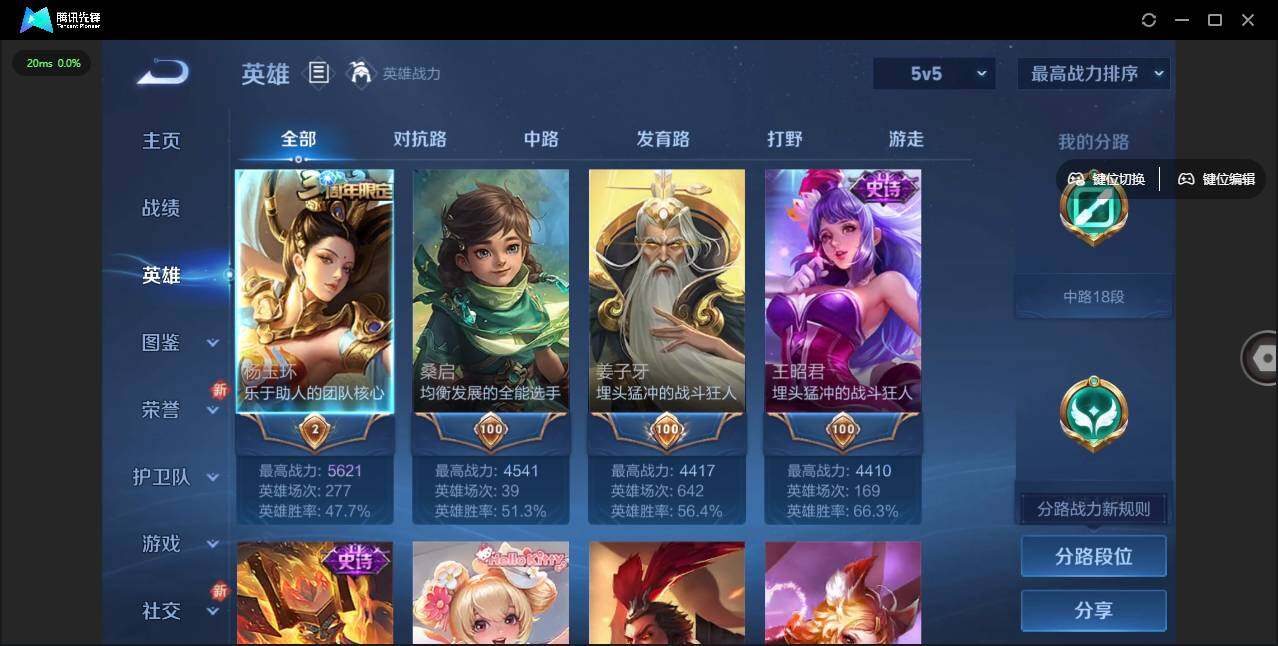 - [12219950]V5 1珍品传说 4传说 57英雄 37皮肤 可修改实名 优质装备:器灵·落星盏,游龙清影(小青龙),超时空战士-狄仁杰,千山共赴 限定皮:愿照·众生和(妲己年限) 史诗皮:化蝶舞,石田雨龙,百相守梦-黄忠,紫霞仙子,女仆咖啡,星夜王子,鬼剑武藏,诗语江南,鹰眼统帅