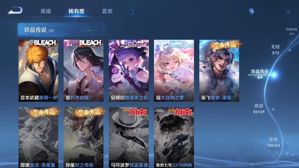 【荣耀典藏】:孙尚香杀手不太冷,鲁班七号星空梦想,芈月大秦宣太后,程咬金活力突击,李白鸣剑曳影,花木兰九霄神辉,铠银白咏叹调,虞姬神鉴启示录