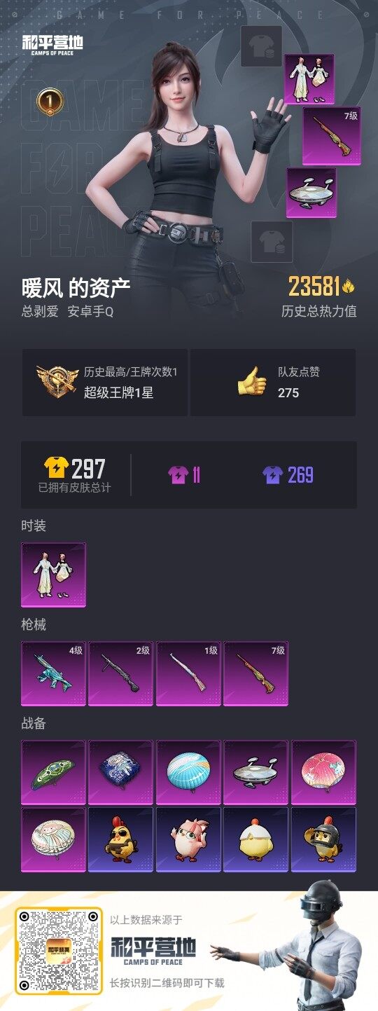 - PX_2087875- 可二次 安卓手Q-9王牌印记-11粉装-9特效枪-5载具-87438热力值-168套装-237枪皮-1卓越印记-0传奇印记 【11粉装】,梦幻火箭,天使彩虹糖,缤纷油彩,新星烈龙,第五大道,蓝莓炮弹,碧影闪光,酣梦娃娃,俏皮狐尾,冰霜白皇,炙焰红王 【9特效枪】,AKM-炫紫旋律-5级 SCAR-L-童趣迷兔-5级 M416-心之恋语-7级 M416-五爪金龙-3级 M41