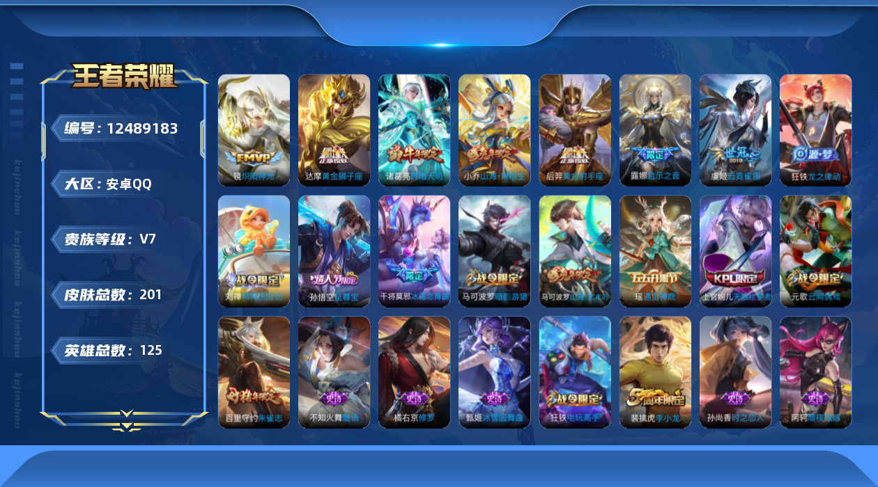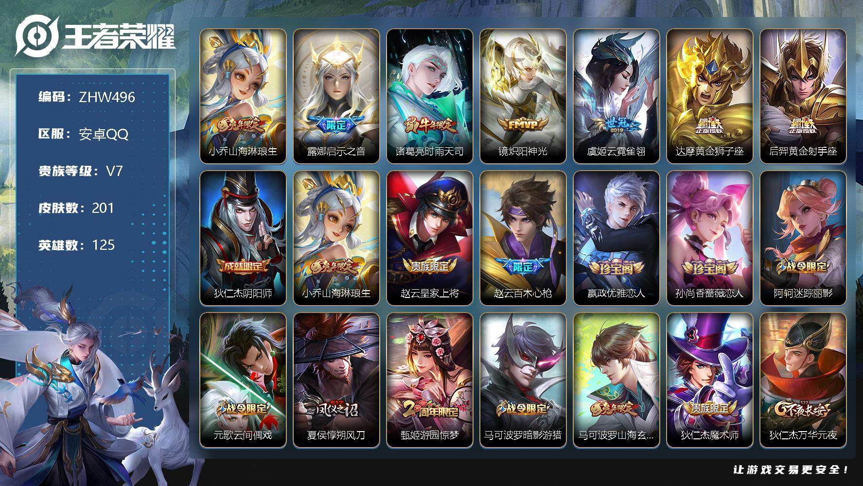 [12489183]【特价急出/详情看图】:安卓Q-V7-永恒钻石I段位-125英雄-201皮肤-7传说-68史诗