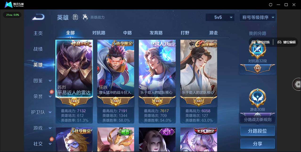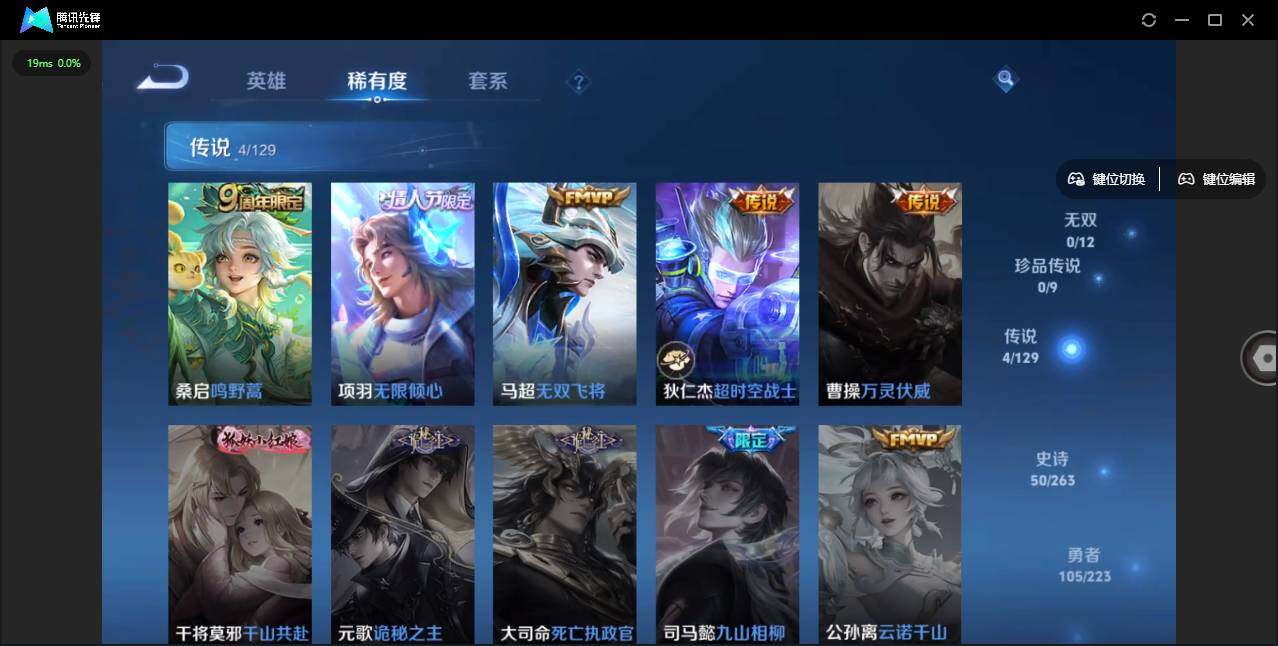 - [11527468]V4 1典藏 2传说 117英雄 103皮肤 可修改实名 优质装备:弑枪猎影(韩信典藏) 传说皮:幻光神枪 珍宝阁皮:玩趣恶龙 限定皮:愿照·岁时盈(虞姬年限),遇见飞天,五谷丰年 史诗皮:化蝶舞,紫霞仙子,特工魅影,江河有灵,猫狗日记-孙策,乱世虎臣,修罗,摇滚巨星,水果甜心,鬼剑武藏,心灵战警,乘风破浪,曙光守护者,金属风暴,原初追逐者,圣诞恋歌,鹰眼统帅,魅力维加斯