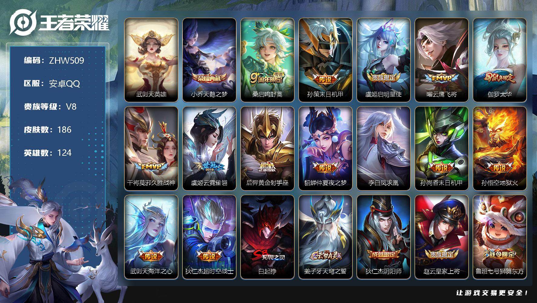 [12504946]【特价急出/详情看图】:安卓Q-V8-尊贵铂金I段位-124英雄-186皮肤-1典藏-14传说-46史诗