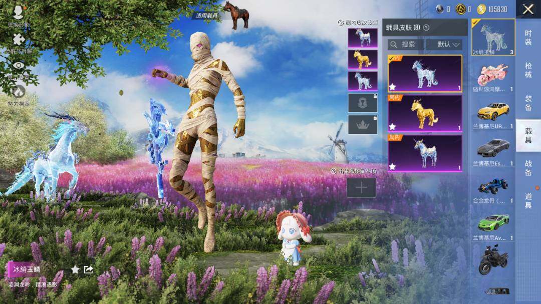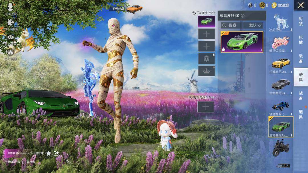 【粉色载具】:兰博基尼Aventador SVJ(翡翠绿),兰博基尼Estoque(银翼灰),兰博基尼URUS(明艳黄),合金龙骨(蓝),盛世惊鸿摩托车,僚机-萌兔起飞,僚机-圣域龙宝,星梦玉骢,护世瑞兽,冰绡玉鳞