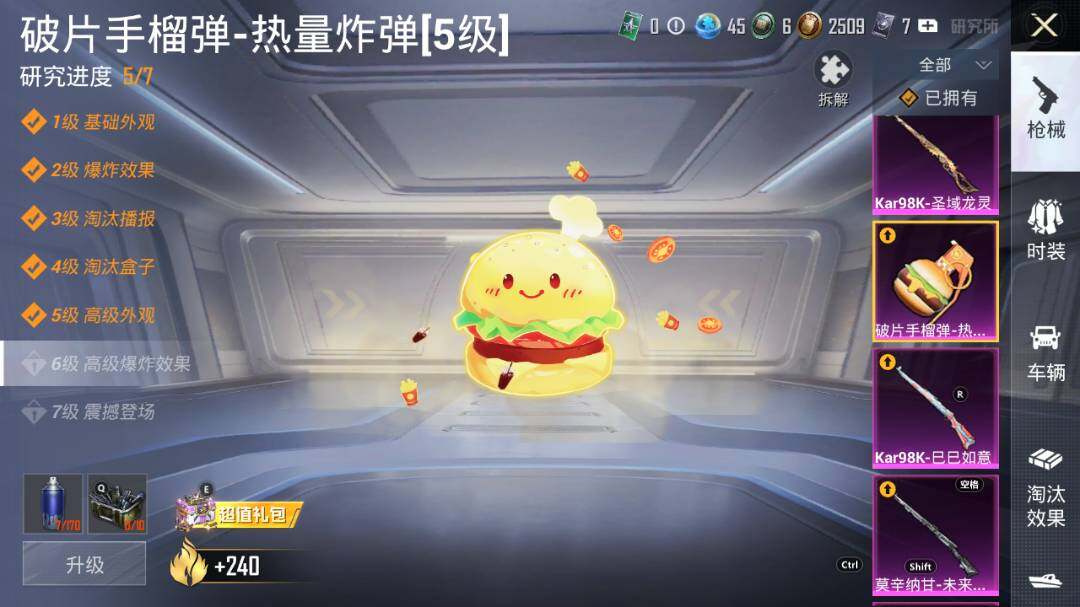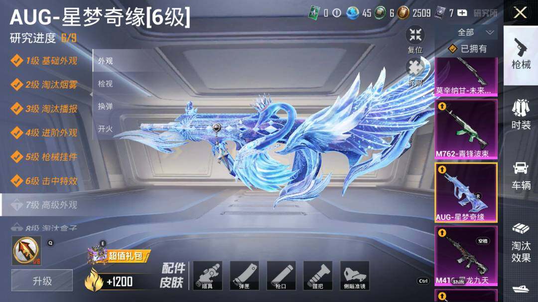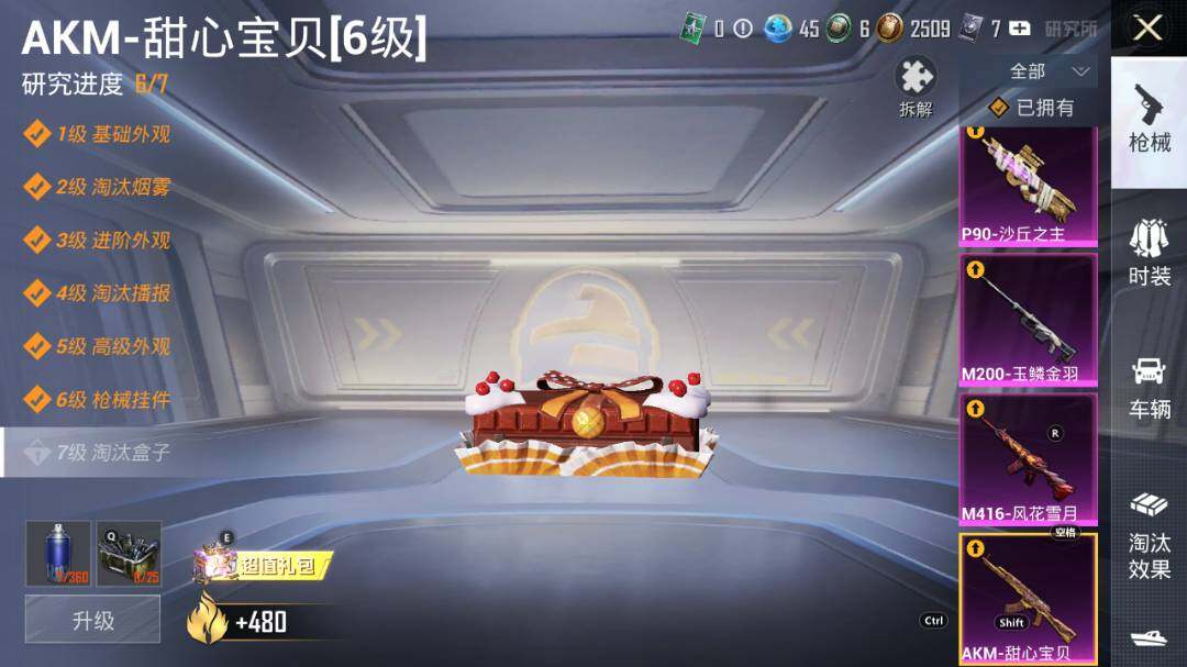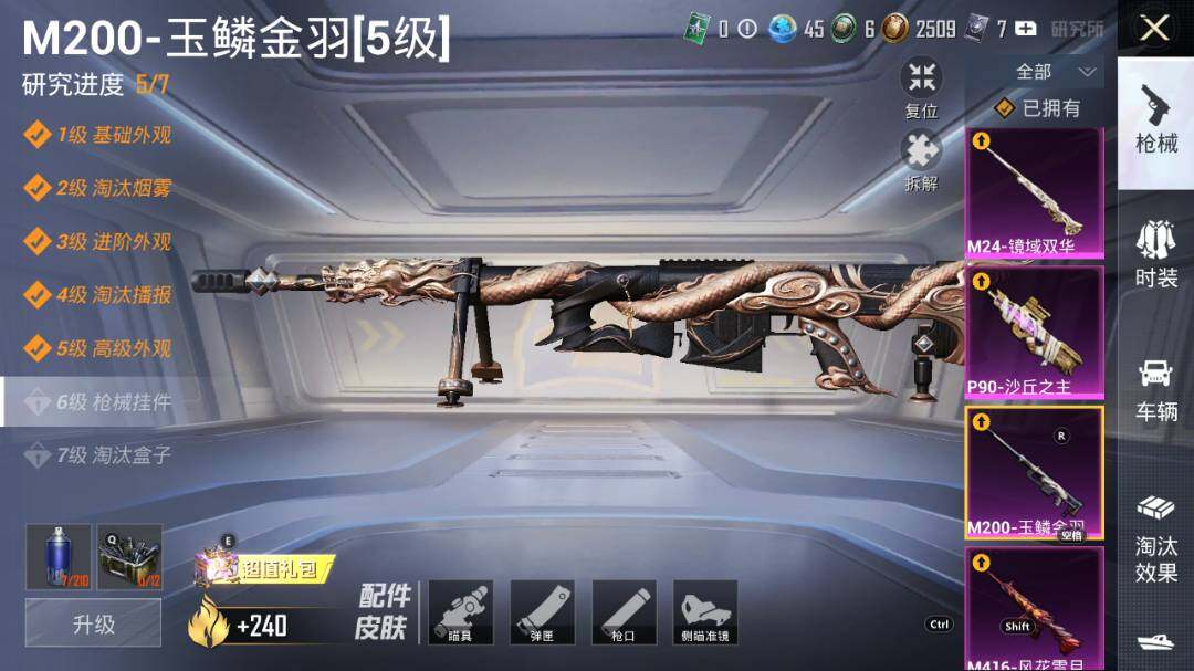 AKM-甜心宝贝,M416-风花雪月,M416-墨龙九天,AUG-星梦奇缘,M762-青锋波束,P90-沙丘之主,Kar98K-巳巳如意,Kar98K-圣域龙灵,M24-镜域双华,莫辛纳甘-未来领航者,M200-玉鳞金羽,破片手榴弹-热量炸弹