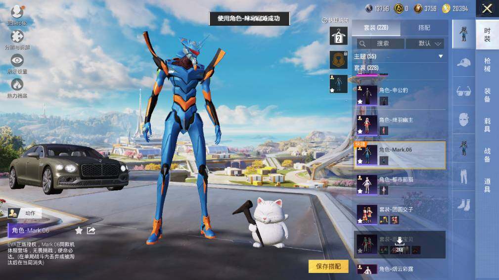 套装-浪漫天命,套装-龟仙人,套装-粉红小猪,角色-8号机,角色-Mark.06,套装-极速红龙,套装-狂沙舞者,套装-破蛋小黄鸡,角色-英勇保护者,套装-漫步者,套装-弄潮海豚,套装-静谧青瓷,角色-赛罗奥特曼,套装-瑞龙福将,套装-团圆交子