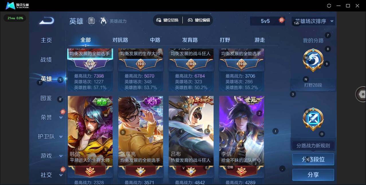 - [12289563]V7 1典藏 8传说 123英雄 250皮肤 可修改实名 优质装备:全息碎影(猴子典藏),黄金狮子座,久胜战神,地狱火,仲夏夜之梦(大飞蛾),胖达荣荣 传说皮:幻光神枪 珍宝阁皮:妄想食味,玩趣恶龙 限定皮:逐霄战戟,鸣野蒿,至尊宝,飞衡(韩信年限),遇见飞天,梁祝,天狼狩猎者,龙胆,烈魂,天狼绘梦者,李小龙,逐梦之影,辉光之辰,霸王别姬-虞姬,默契交锋-花木兰,大圣娶亲,天魔缭乱,乒乒小将 史诗皮:龙之律动,破空之剑,百相守梦-百里守约,紫霞仙子,黄金分割率,特工魅影,千年之狐,白蛇,冰冠公主,末日机甲-吕布,猫狗日记-孙策,节奏热浪,摇滚巨星,水果甜心,绅士熊喵,天才门将,星夜王子,心灵骇客,功夫厨神,幽灵船长,鬼剑武藏,心灵战警,纤云弄巧,乘风破浪,逐浪之夏,龙鼓争鸣,水晶猎龙者,曙光守护者,金属风暴,原初追逐者,圣诞狂欢,鹰眼统帅,暗夜贵公子,魅力维加斯,黎明之约