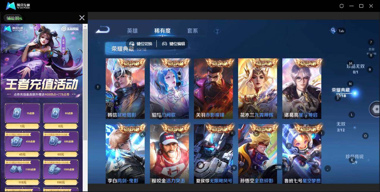 【荣耀典藏】:孙悟空全息碎影,夏侯惇无限飓风号,鲁班七号星空梦想,程咬金活力突击,李白鸣剑曳影,诸葛亮星域神启,花木兰九霄神辉,关羽赤影疾锋,貂蝉幻阙歌,韩信弑枪猎影