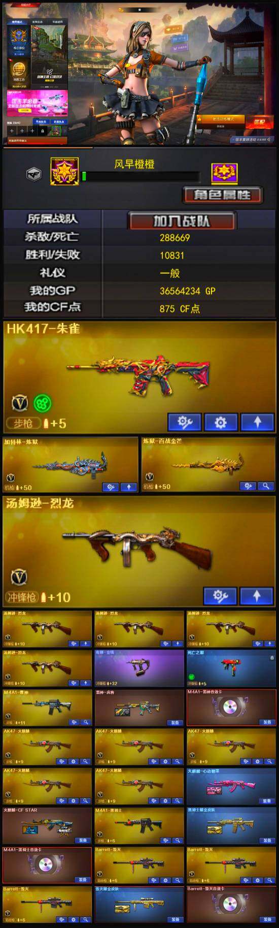 【热门武器】:HK417-朱雀,死亡之眼,M4A1-黑骑士,汤姆逊-烈龙*5,加特林-炼狱,沙鹰-修罗*3