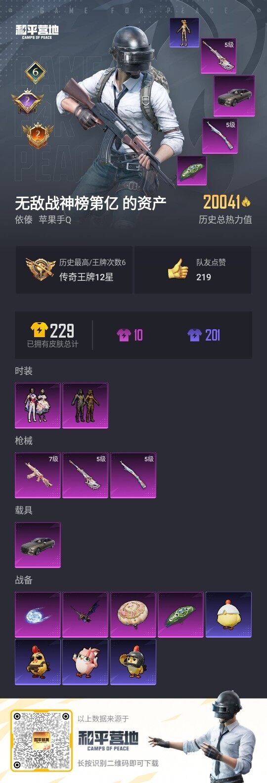 - PX_2038032- 安卓手Q-8王牌印记-6粉装-8特效枪-3载具-55382热力值-104套装-143枪皮-1卓越印记-0传奇印记 【6粉装】,第五大道,洛天依,蓝莓炮弹,流星咚咚,绚金战神,星之彼岸 【8特效枪】AKM-梦之光华-4级 SCAR-L-青春物语-4级 M416-五爪金龙-4级 M762-冷魅冰骑-6级 M762-激战未来-2级 VSS-烈焰拳霸-2级 SLR-暗夜玫瑰-2级