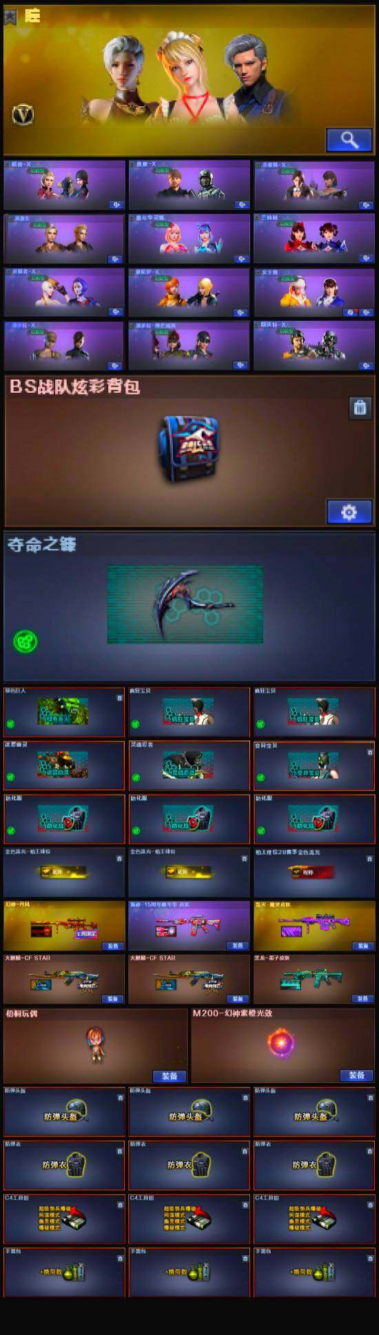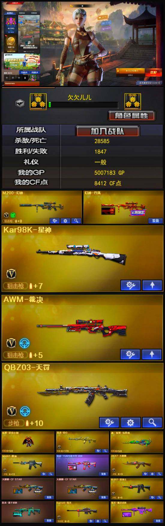 - [12624965]广东一区-41V-8王者-0炫金 【热门武器】:QBZ03-金色蔷薇,Scar Light-白虎,修罗-古蛇迷踪,炽芒蝶刃 【稀有皮肤】:白虎-热带奇洋 皮肤,雷神-虎将,雷神-传奇N9,雷神-宠儿-2019MVP,火麒麟-平天大圣,火麒麟-心动糖果 【人偶武器】:AWM-灵狐-15周年嘉年华*2,迷你巨石泰坦-魔花研究所,生化手雷-机甲核心 【暴走生化】:超级对讲机 【挑战大师】:激光毁灭者III-白马银枪 【英雄级武器】:COP 357-云龙,烈火-动感闪耀,天神-动感闪耀,屠龙-动感闪耀,手雷-动感闪耀,QBZ03-金色蔷薇,Scar Light-白虎,无影-神兵利器,M4A1-雷神,AN94-超新星,Barrett-毁灭,黑武士-锦绣游龙,超新星-热带奇洋,M4A1-赤狱骑士,修罗-古蛇迷踪,炽芒蝶刃,龙啸-热带奇洋 【特殊枪械】:1白虎