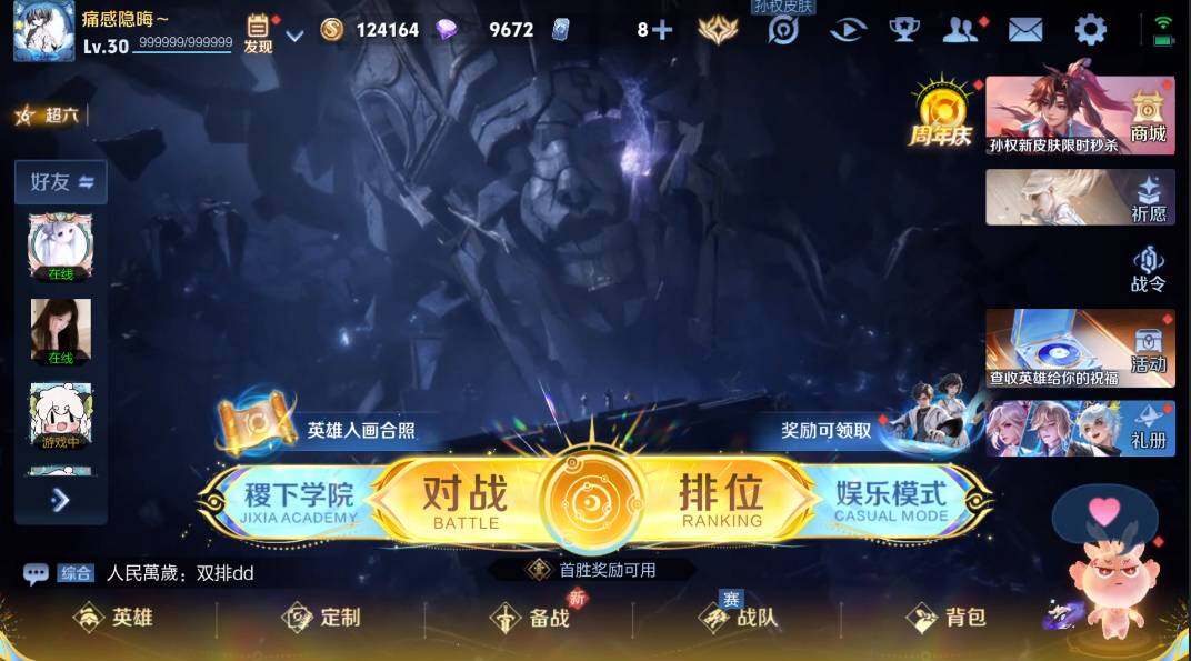 - [12198418]V6 2传说 124英雄 241皮肤 可修改实名 优质装备:地狱之眼 传说皮:幻光神枪 珍宝阁皮:万物之道,蔷薇恋人,玩趣恶龙 限定皮:高山流水,五谷丰年,游园惊梦,梁祝,李小龙,孙行者,猪悟能 史诗皮:化蝶舞,星界战将,龙之律动,东方月初,百相守梦-百里守约,百相守梦-黄忠,特工魅影,千年之狐,江河有灵,百解令(蒙犽),蒙恬荣光圣徽,电玩·爆裂旋风,暗夜猫娘,猫狗日记-大乔,修罗,摇滚巨星,水果甜心,功夫厨神,德古拉伯爵,幽灵船长,鬼剑武藏,舞动绿茵,地狱岩魂,纤云弄巧,拒霜思,乘风破浪,逐浪之夏,金属风暴,原初追逐者,鹰眼统帅,魅力维加斯,黎明之约