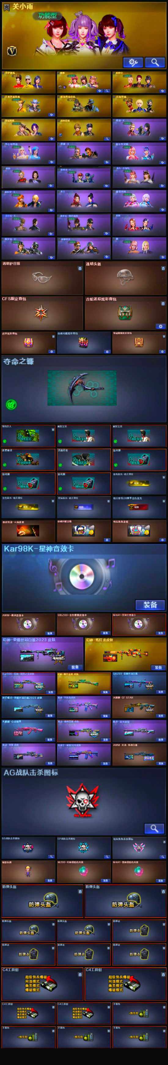 - [11714973]11粉装 3特效枪 10印记 可二次 可修改实名 女号 身法装备:暗影哥特(红眼罩) 优质装备:M416五爪金龙,天使彩虹糖,AUG妙趣可丽,七级M416-五爪金龙,未来领航者,樱桃泡泡,Kar98K-巳巳如意 热门装扮:山涧鹿灵,妙趣可丽,傲雪凌霜,星夜魔法师,仲夏莫吉托,呆萌星弥,小可学妹,炫光之旅,动感兔斯基,胖达圆圆,奶芙汪汪,罗小黑,激萌罗小黑 六级特效枪:六级AUG-妙趣可丽 四级特效枪:四级Kar98K-巳巳如意 紫色装扮:田园牧歌,轻风白浪,和煦暖阳,SS22特训,飞狐塔尔斯,SS23特训,幻彩翩翩,灵蜜圈圈,妙红点点,香榭午后,娇憨猪猪,酸甜橘柚,奶油香芋,樱桃黑巧,萌趣咩咩,SS21特训,浪漫假日,SS31特训套装,人气偶像,六六大吉,冷焰舞者,SS30特训套装,SS33特训套装,青涩时光,SS20特训,青春冒险家,潮流游乐家,SS15特训,SS16特训,冰爽海盐,SS14特训,萌趣颜团子,猎梦纪元,飞驰魅影,音速流光,SS19特训,粉团憨憨,豚鼠丹丹,软羊咩咩,醇脆可可,香草威化,吉莉礼服,甜心亚梦,虚音幻奏,SS17特训,沁蓝冰爽,SS18特训,都市漫游者,都市魅力,酒红色名流,酷潮明星,野性战心,长空猛禽,霓虹街区,青年教官,荷畔雨呱,耀眼新星,荣耀,蓝彩潮人,蓝色守护者,蓝色运动,街头潮人,飞行日记,魅力单车,鹤鸣,麻辣教官,黄色伏地魔,黄色名流,黄色运动,黑色伏地魔,龙的传人,龟仙人,蝶变,极速红龙,柠萌假日,橘黑制服,涂山之恋,深蓝色名流,清新柠檬,幻影武者,夏日音浪,完美偶像,帅气教官,幻世战舞者,怒火燎原,战地督导,探宝勇士,湖蓝色名流,绮丽涂鸦,白熊同盟,白色伏地魔,破蛋小黄鸡,福星高照,空岛之星,竞技达人朋克,红色运动,甜蜜熊情侣,王牌教练,牛气冲天,灼焰舞者,炫蓝之夏,热血青春,牛气满满,猛禽,狂战萌兔,狂沙舞者,猎鹰,雏菊兔兔,萝兰蝴蝶,SS29特训,星途旅人,纯真浪花,热情海星,SS28特训,卖崽青蛙,粉雾星云,暗影刺翼,鱼渊荷华,玉兔迎春,燕燕于飞,青团波波,糖糖葫芦,竞技名士,摩登魅猫,暗影哥特(红眼罩),惊鸿侠骨,甜梦熊熊,神气柴柴,懵萌河马,SS24特训(SS24特训套装),绚紫流光,SS25特训,皇家花园,绝对偶像,金戈铁马,锦衣飞扬,粉红小猪,焰鹰斗篷,幻羽潜行,幽夜迷踪,SS27特训