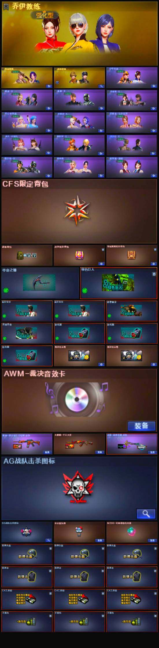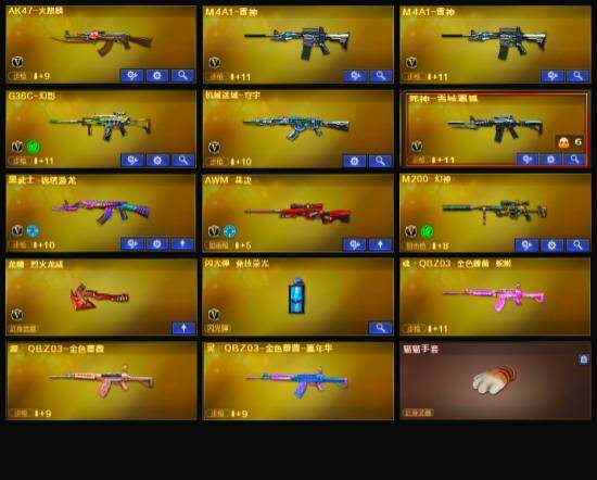 【英雄级武器】:闪光弹-竞技荣光,G36C-幻影,M4A1-雷神*2,AK47-火麒麟,AWM-裁决,M200-幻神,黑武士-锦绣游龙,死神-雪域霜狐,M4A1-赤狱骑士