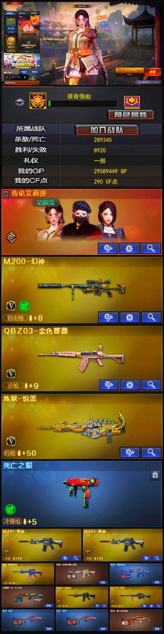 【热门武器】:QBZ03-金色蔷薇,M200-幻神,死亡之眼,M4A1-黑骑士,沙鹰-修罗*2