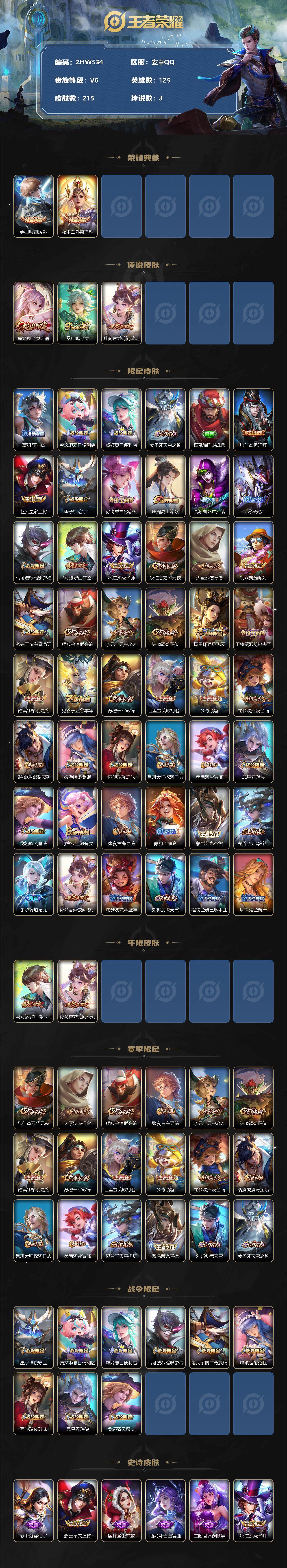[12533658]【特价急出/详情看图/发育38段】:安卓Q-V6-永恒钻石III段位-125英雄-215皮肤-2典藏-3传说-64史诗