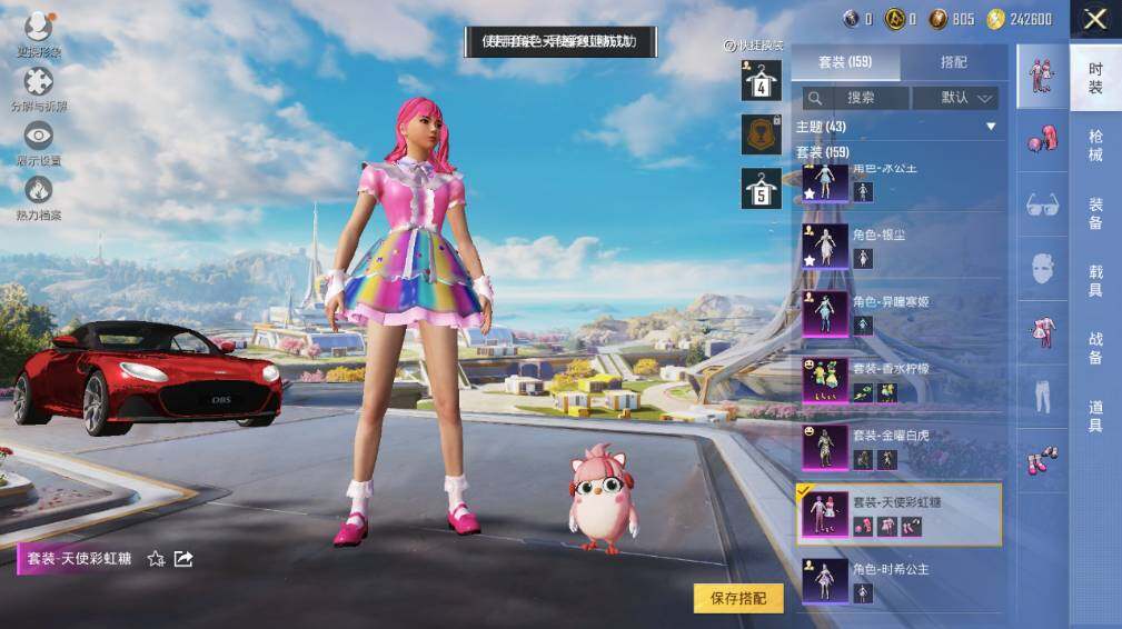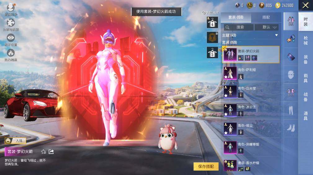 【粉色套装】:粉装-天使彩虹糖,粉装-金曜白虎,粉装-梦幻火箭,粉装-香水柠檬,角色-萨利娅,角色-异瞳寒姬