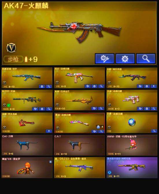 【英雄级武器】:烈火-动感闪耀,天神-动感闪耀,屠龙-动感闪耀,手雷-动感闪耀,无影-神兵利器,AK47-火麒麟,M200-幻神